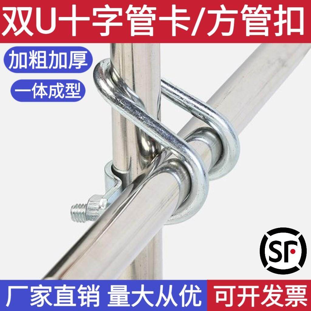 📚 双U型镀锌国标十字管卡管夹u型抱箍卡箍大棚养殖围栏固定卡扣螺丝