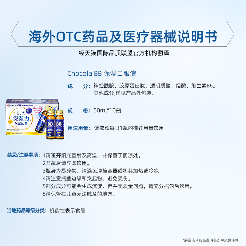 📚 日本ChocolaBB玻尿酸神经酰胺保湿口服液饮10瓶/盒补水胶原蛋白肽