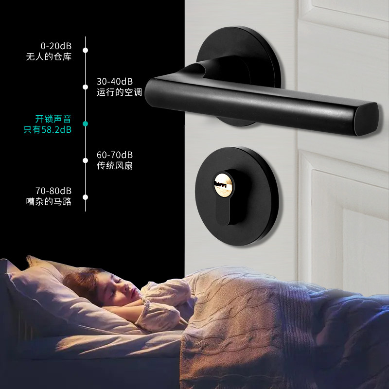 📚 黑色新款家用通用型磁吸静音分体锁门把手实木房门锁精品室内锁具