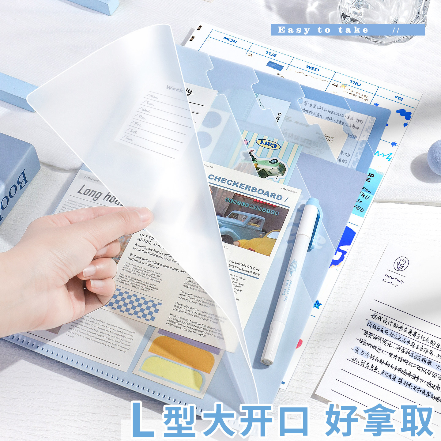 📚 多层L型A4文件袋小学生资料分类收纳袋高颜值大开口试卷袋高级感学习用品单片页夹大容量防水分层透明档案袋