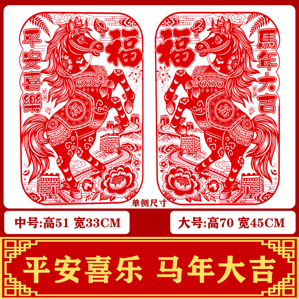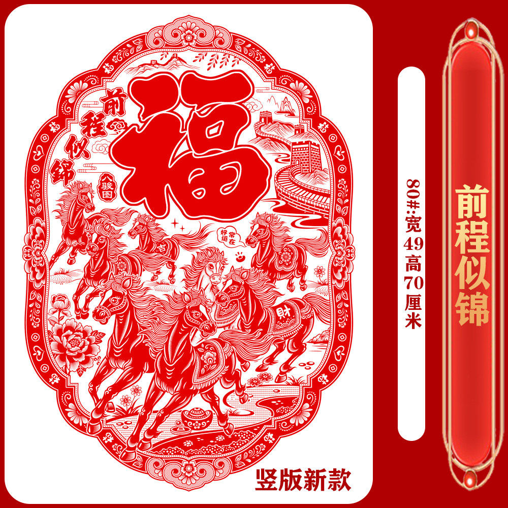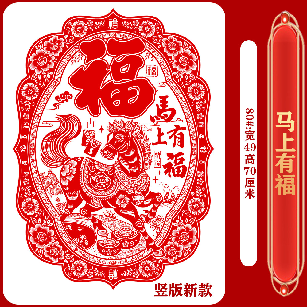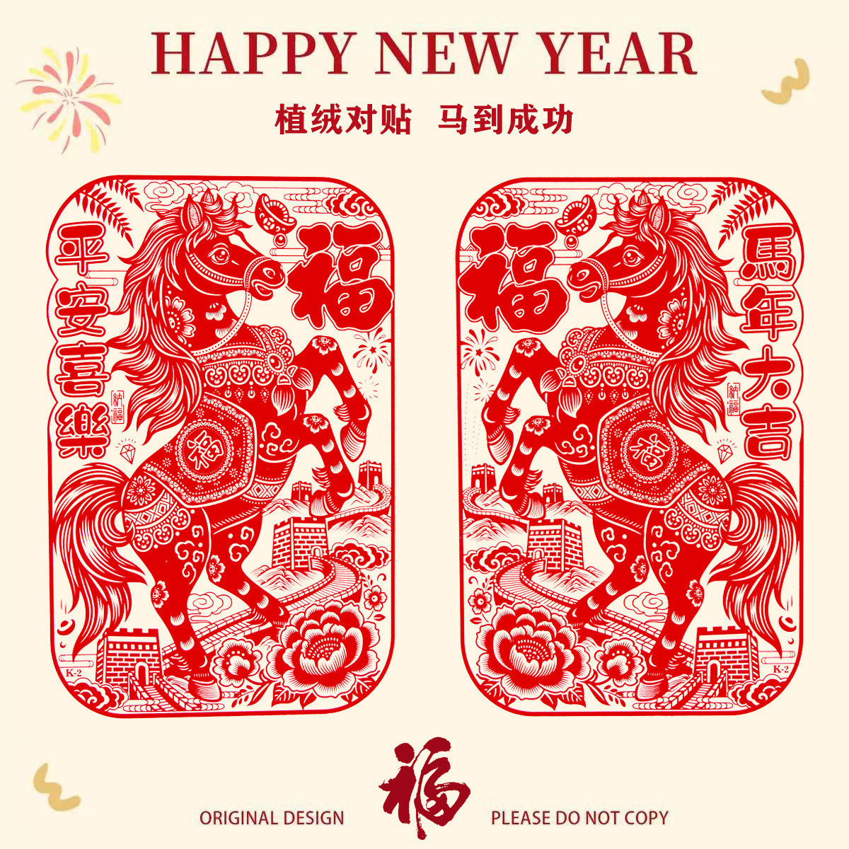 📚 2026马年新年植绒窗花墙贴春节骏马玻璃贴福贴创意福字门贴超大号