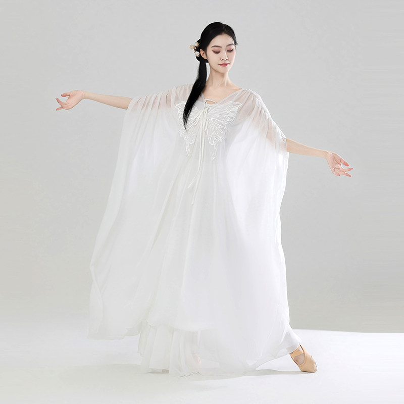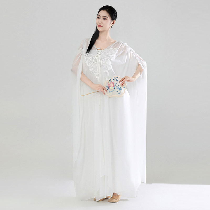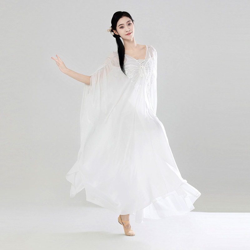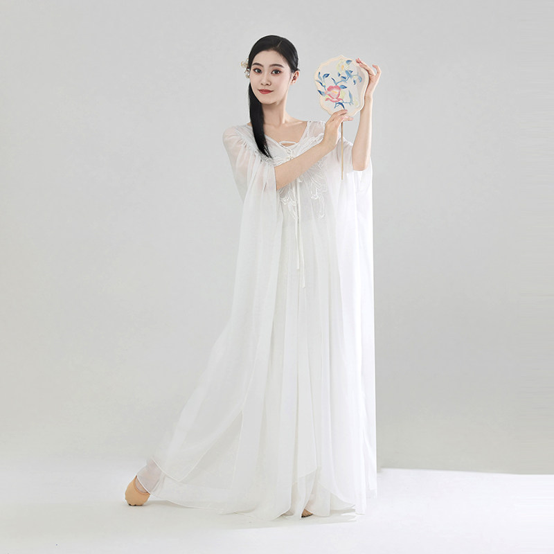 📚 古典舞蹈服飘逸禅意中国舞大摆裙仙气身韵纱衣练功服白色前世今生