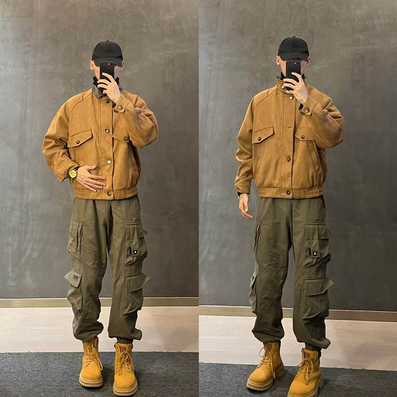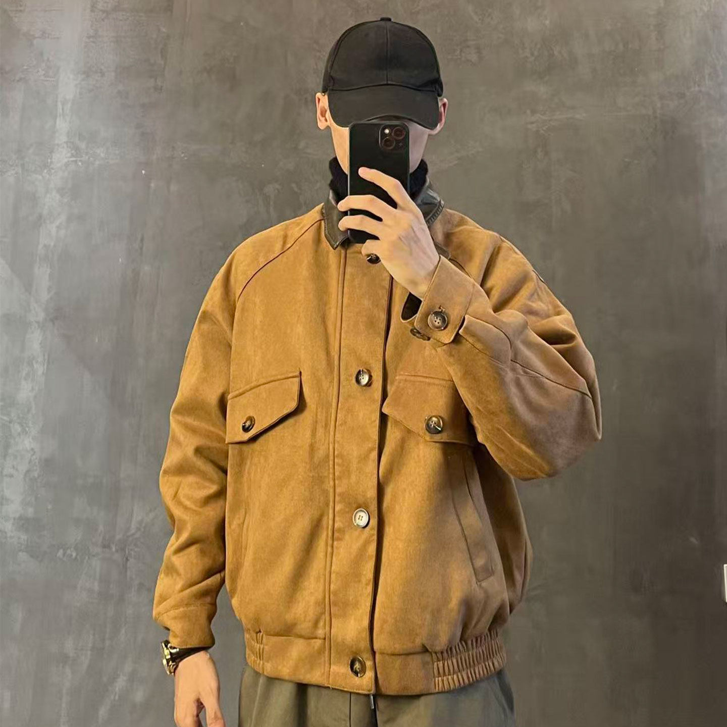 📚 重头来过复古皮领拼接工装夹克男美式美拉德潮牌宽松翻领工装外套