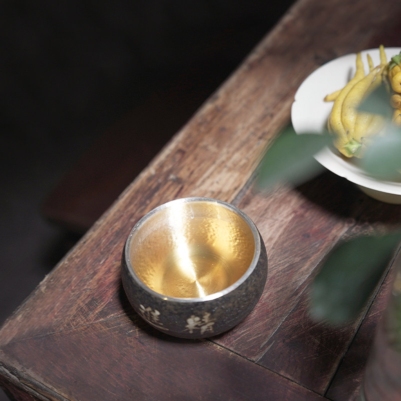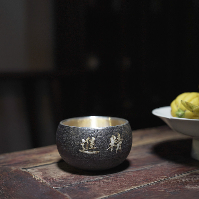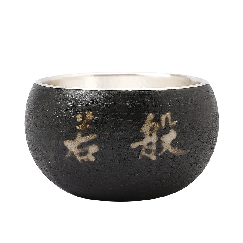 📚 纯银999茶杯银茶杯瓷包银粗陶功夫茶杯家用主人杯品茗杯六度 真言