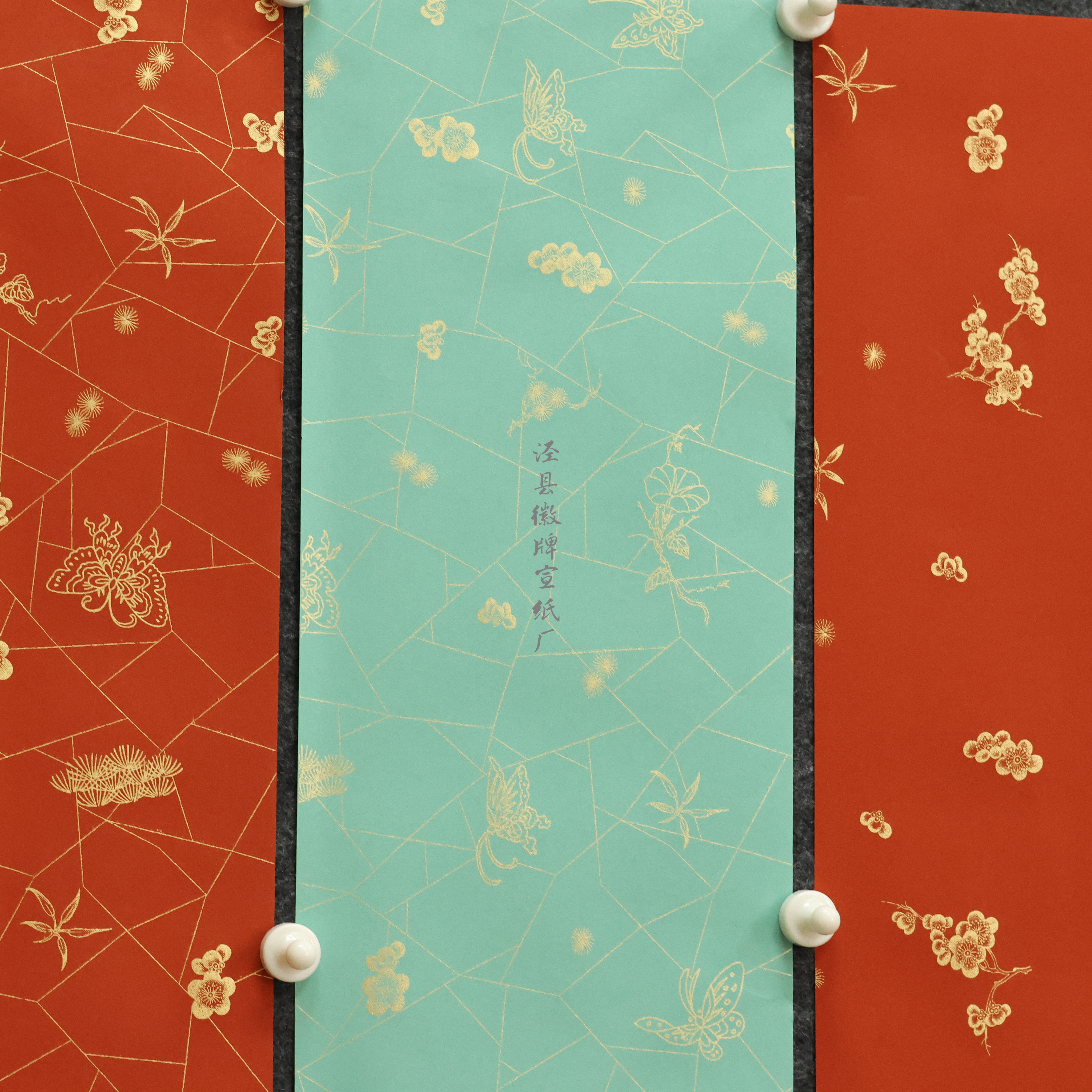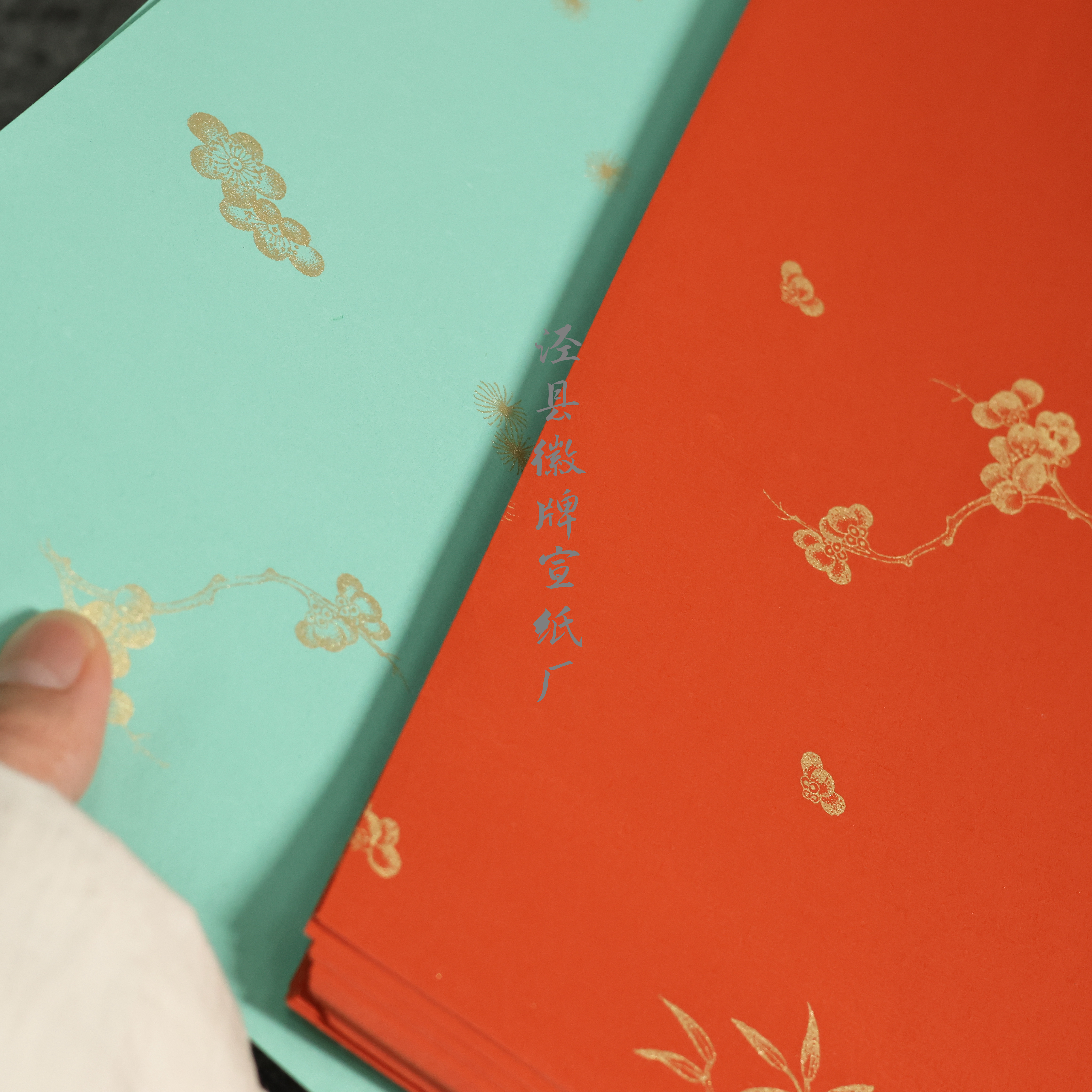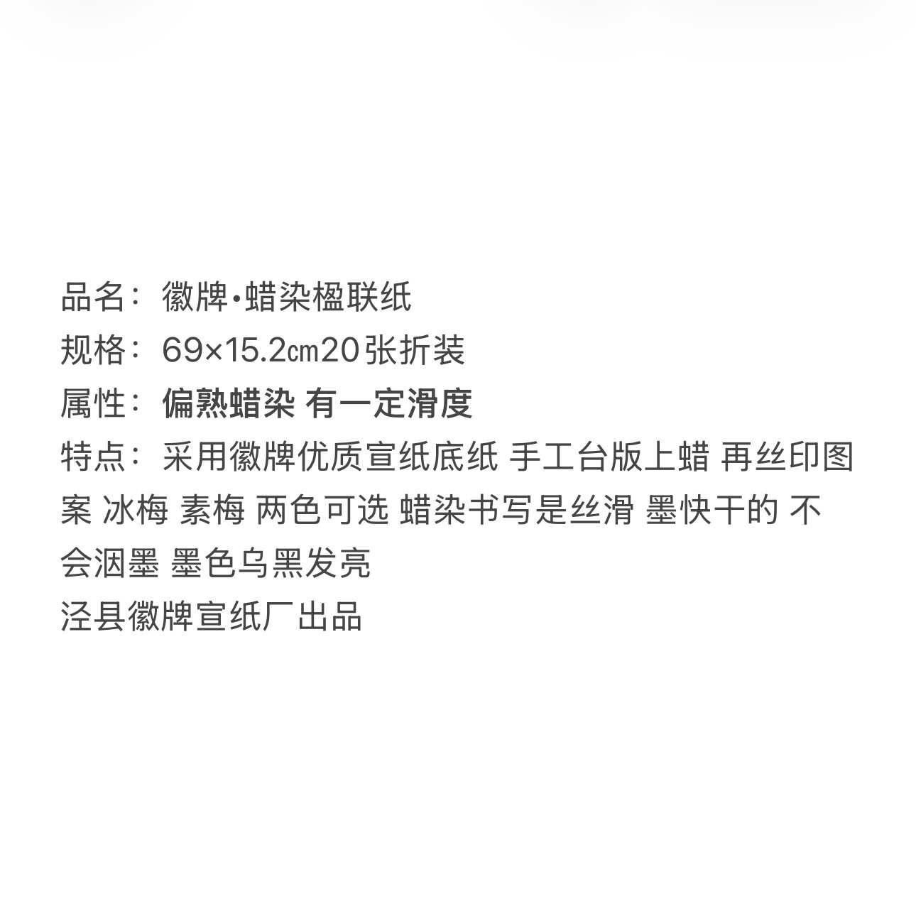 📚 徽牌蜡染楹联纸冰梅素梅半熟偏熟丝滑不洇墨书法练习创作用宣纸