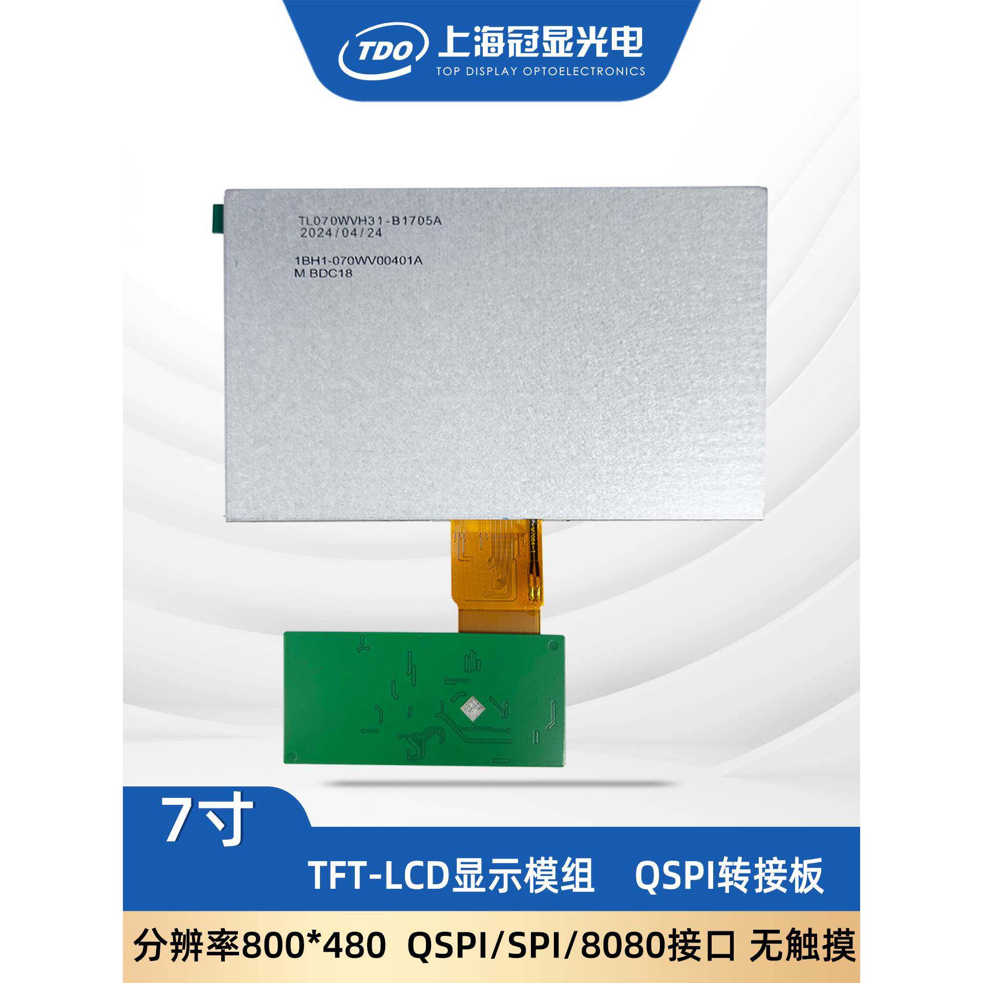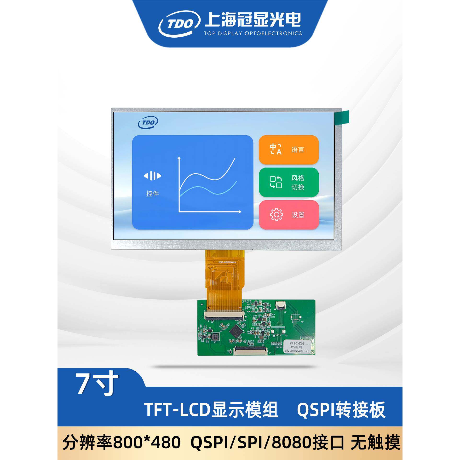 📚 冠显7寸显示屏QSPI/SPI/8080接口800*480分辨率 tft液晶屏 单片机