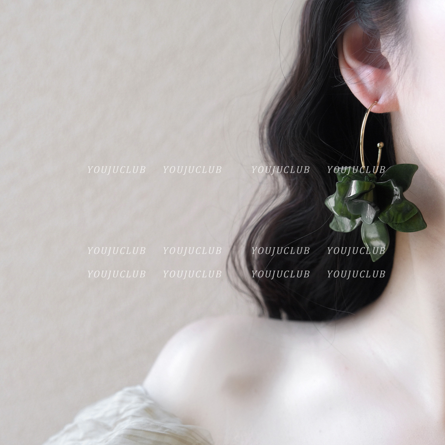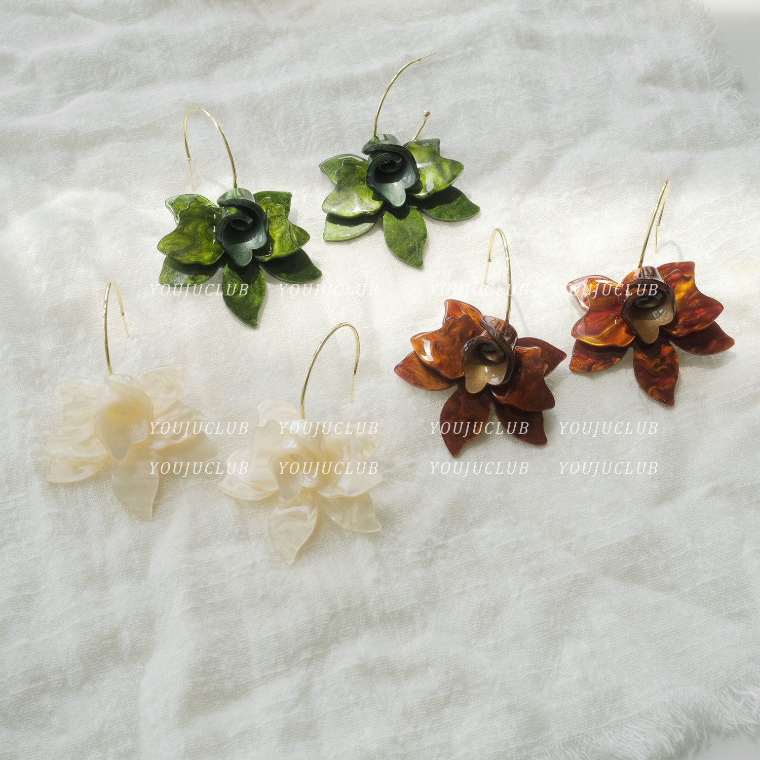 📚 YOUJUclub-雅韵风华~超仙花朵棕色耳环夸张气质白色蚊香盘耳夹女