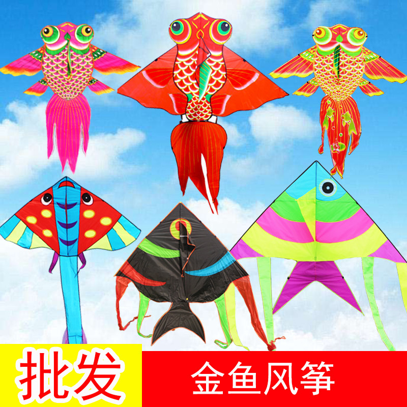 📚 潍坊鸿运风筝烫金鱼大金鱼大红鲤鱼彩条燕鱼美人鱼小鲨鱼好飞包邮