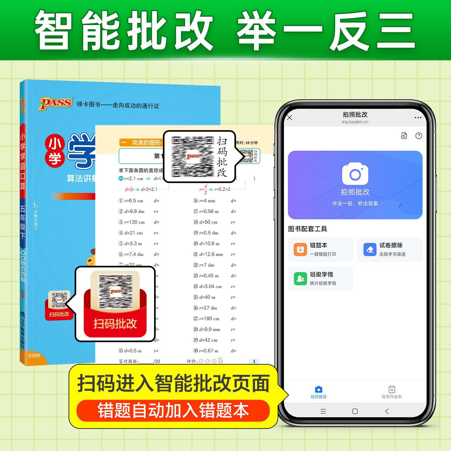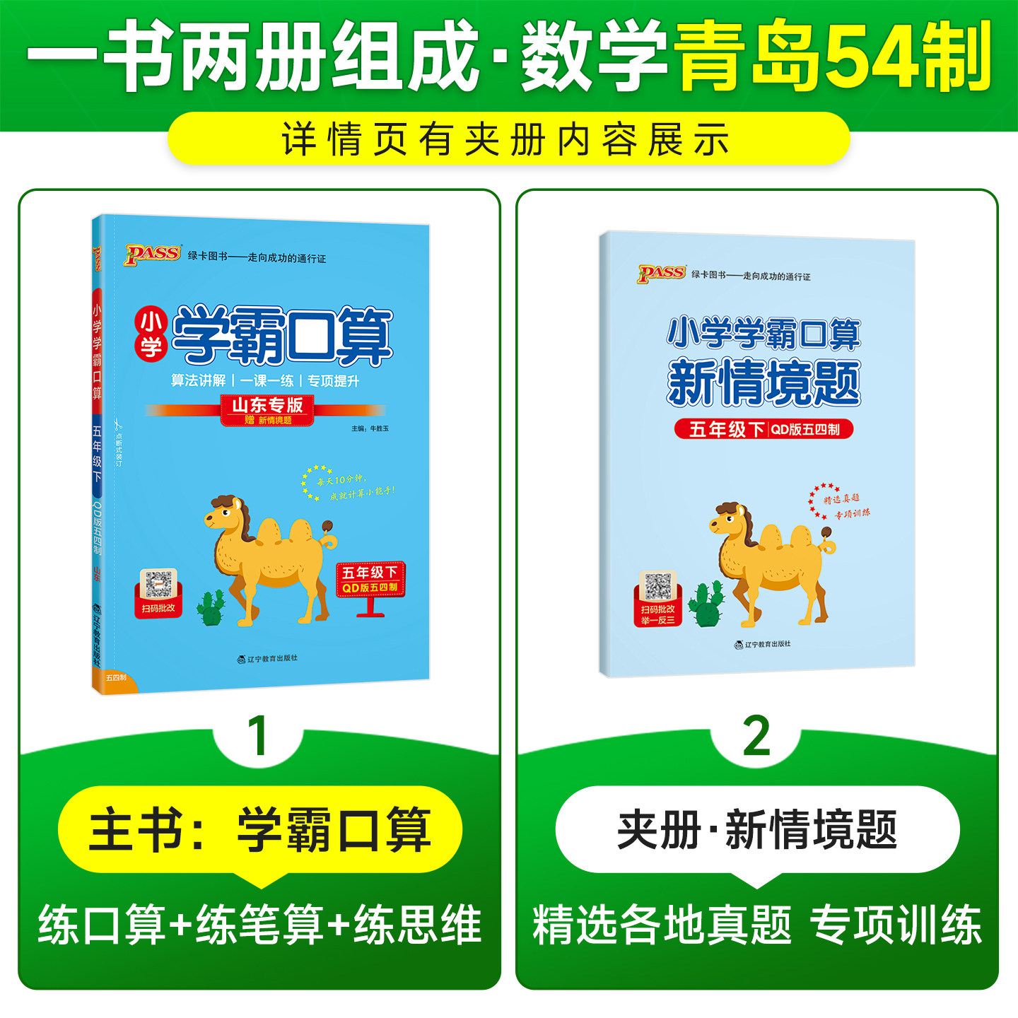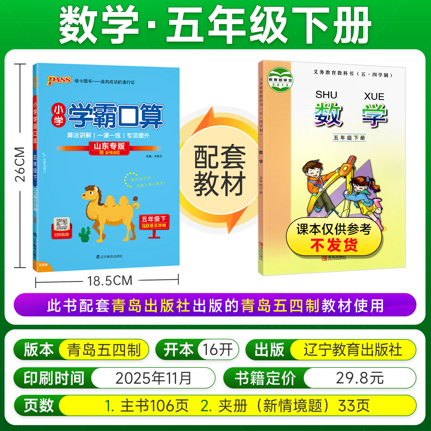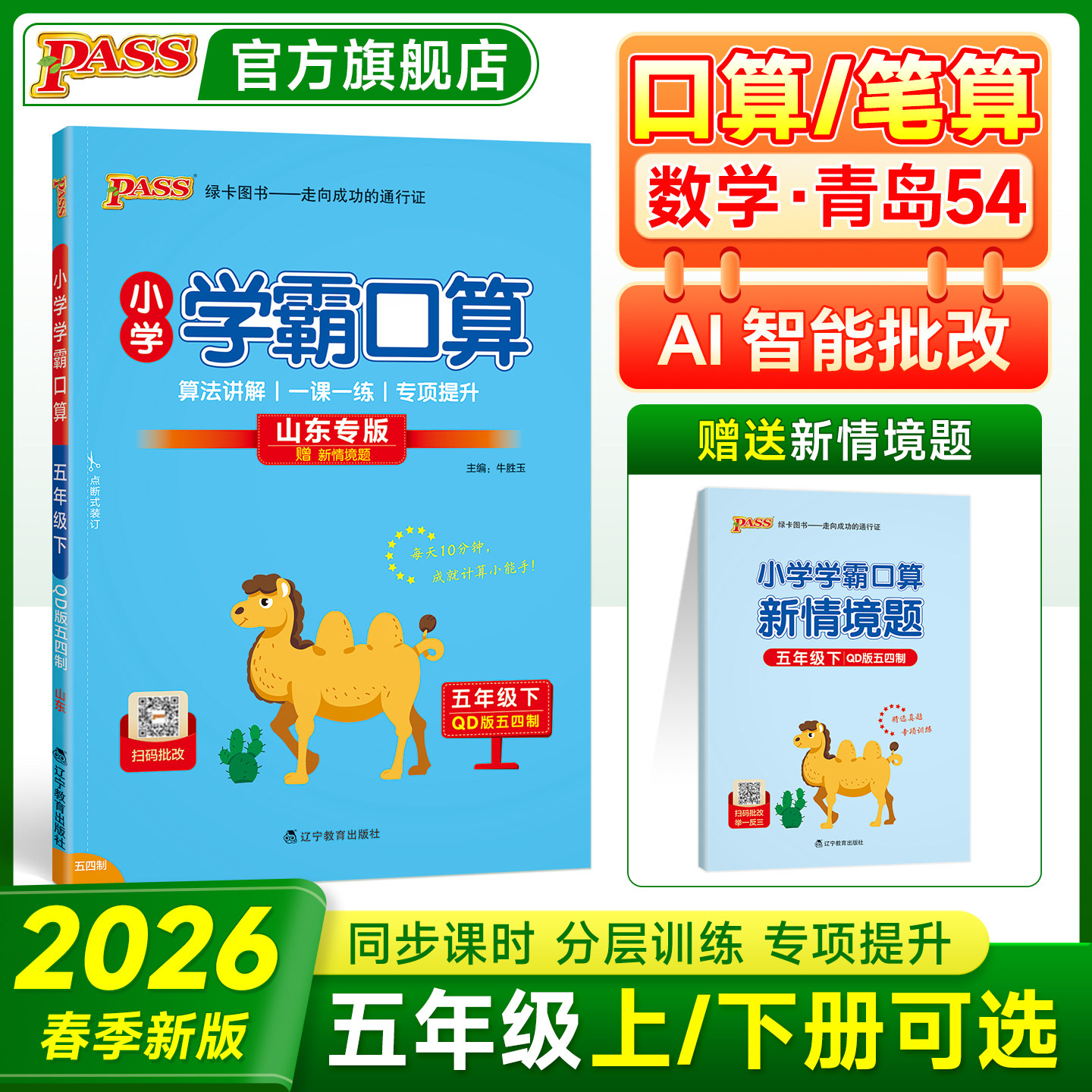 📚 青岛五四制26春小学数学学霸口算天天练五年级上册下册口算题卡计算心算巧算速算口算题大通关pass绿卡图书同步练习册思维专项训练
