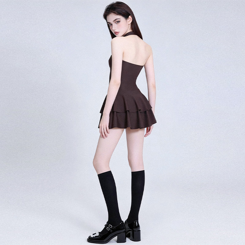 📚 breezeholiday连体裙式泳衣女修身遮肚子显瘦泡温泉显白纯欲泳装