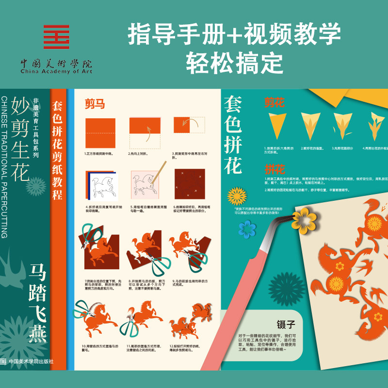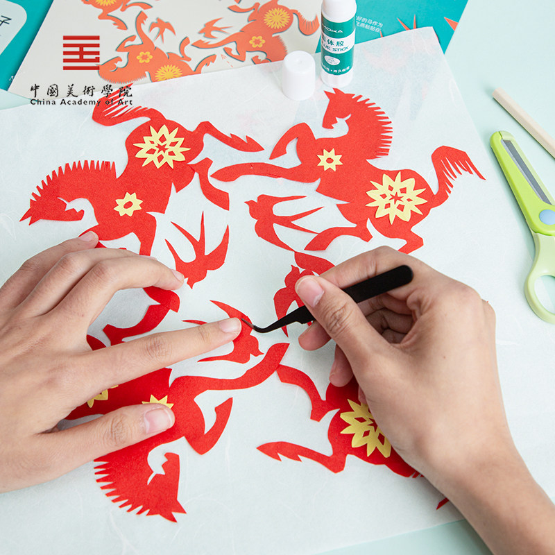 📚 中国美术学院文创 儿童非遗剪纸马窗花diy材料包套装新年手工礼物