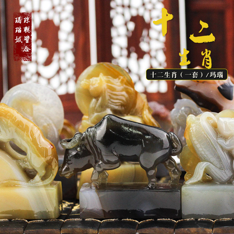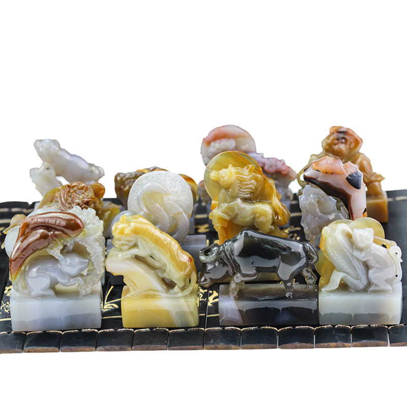 📚 收藏级手工雕刻整套十二生肖鼠牛虎兔龙蛇马羊猴鸡狗猪印章摆件