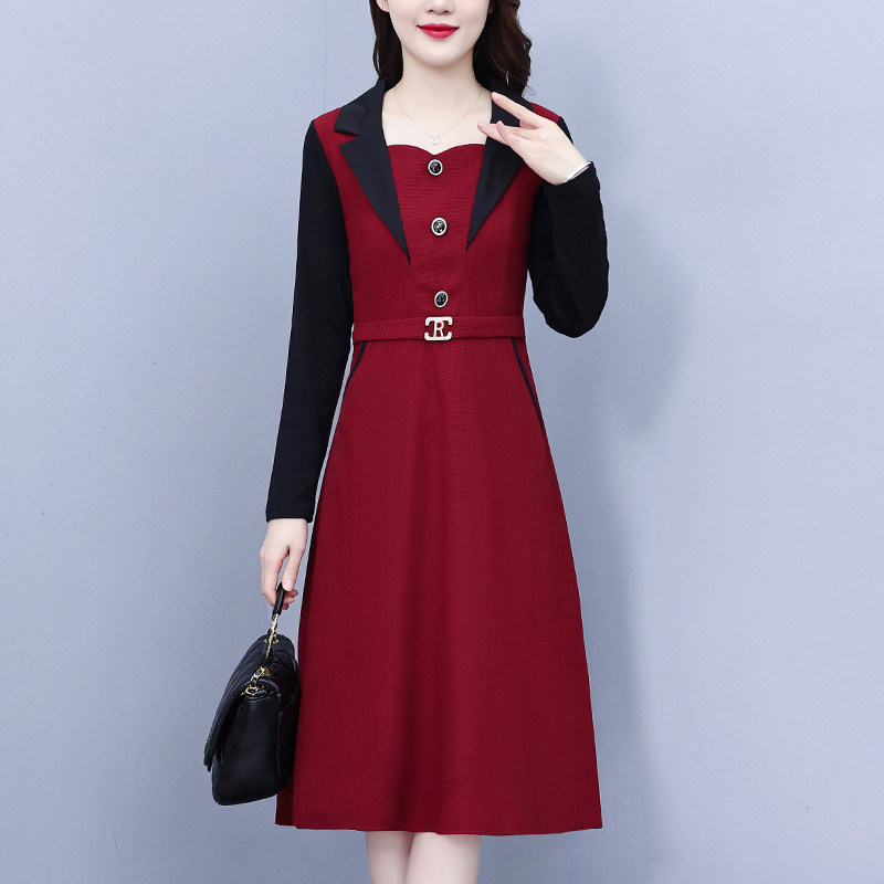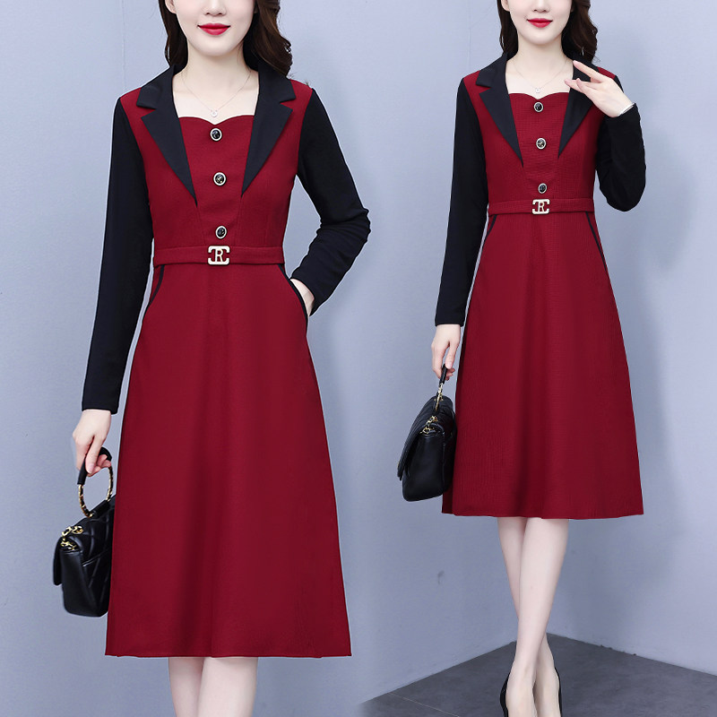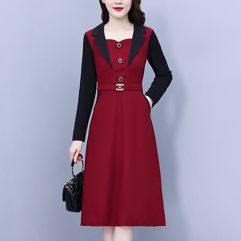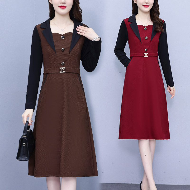 🎉“大码女装2024秋冬胖mm西装领拼接气质遮肚显瘦百搭洋气连衣裙”🎉