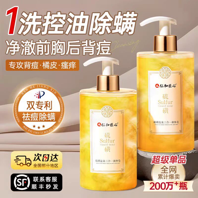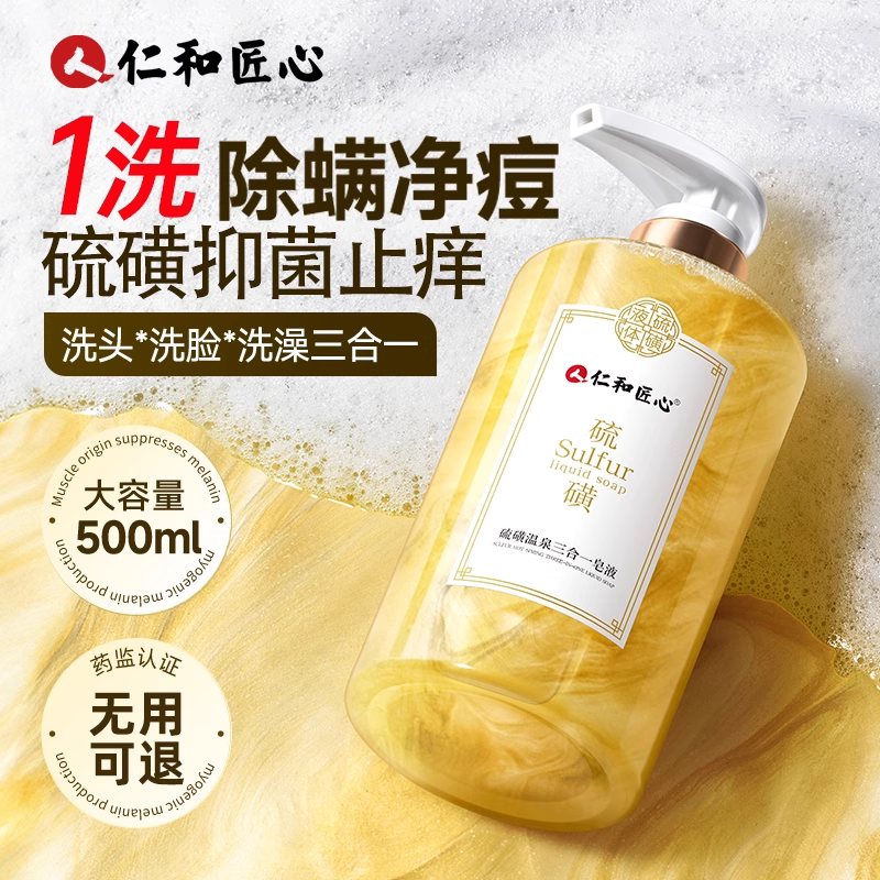 📚 仁和硫磺三合一沐浴露后背除螨祛痘止痒洗脸洗发露官方旗舰店正品