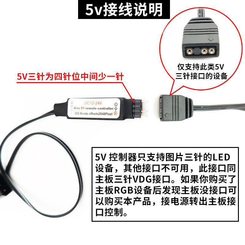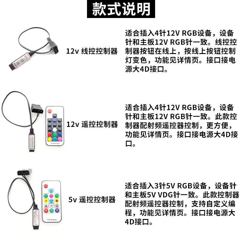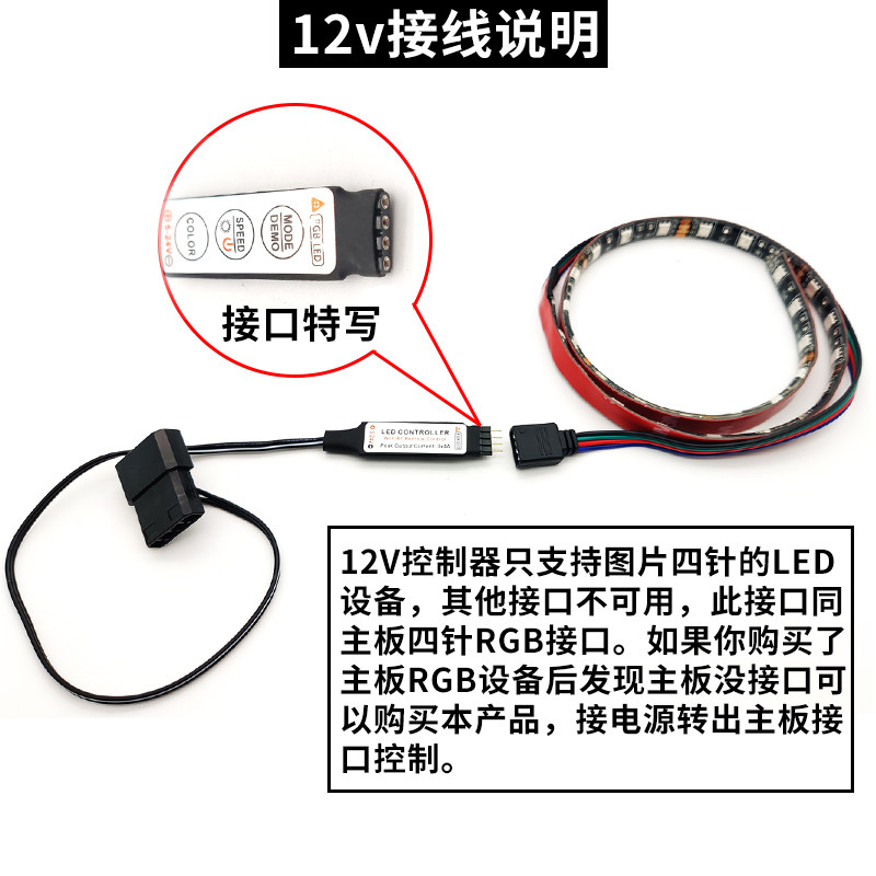 📚 主板RGB 5V三针/12V四针转电源大4D接口 LED灯带线控/遥控控制器