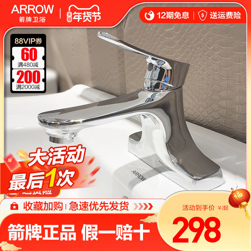 📚 arrow箭牌双孔三孔龙头面盆台盆洗脸盆 水龙头59精铜材质冷热双用