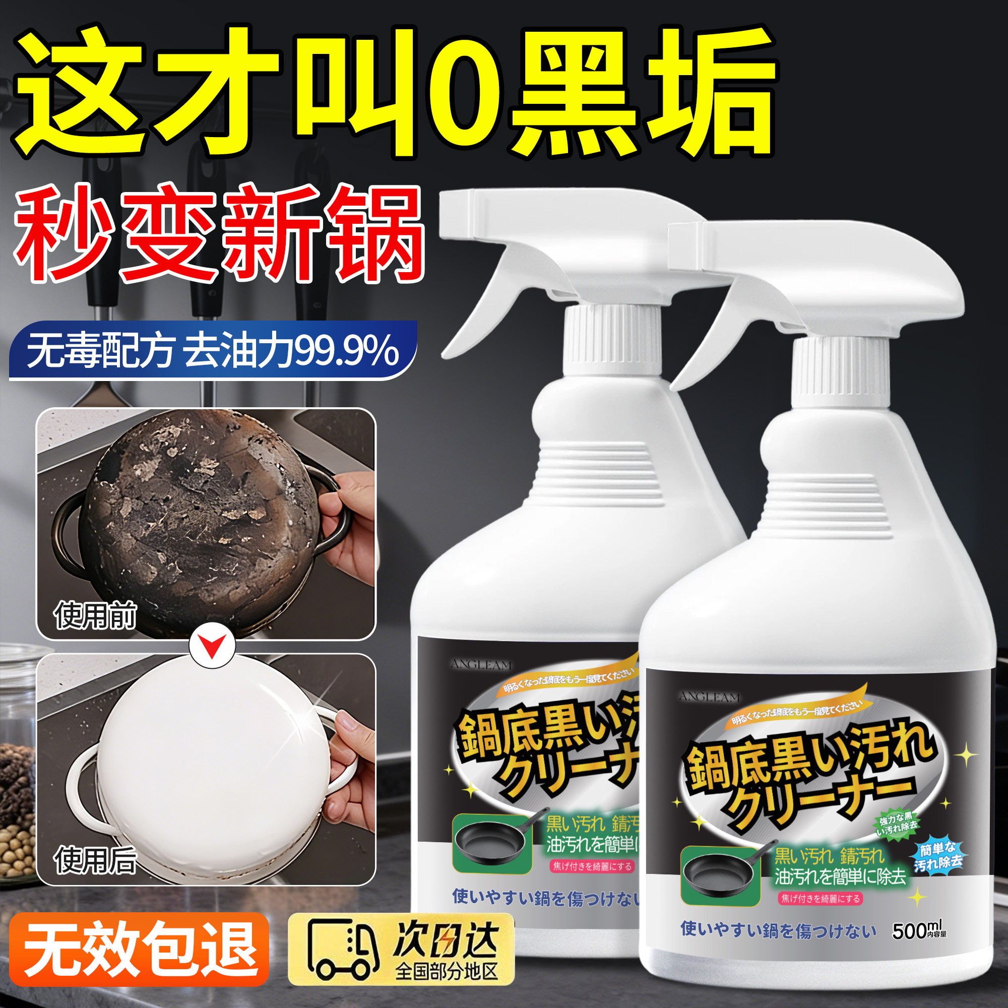 📚 洗锅底黑垢清洁剂强力去重油污刷锅底黑焦烧黑烧焦除垢神器不锈钢