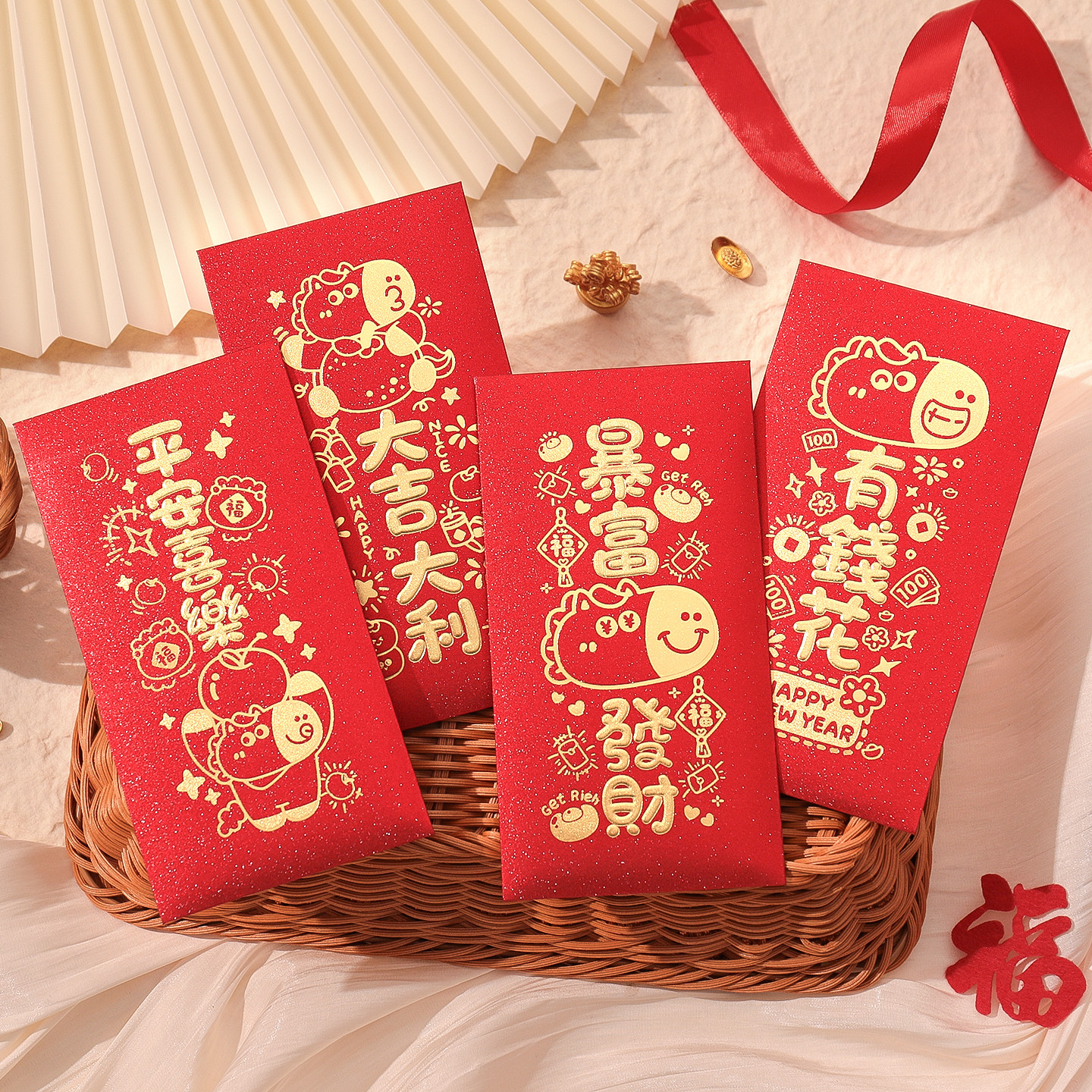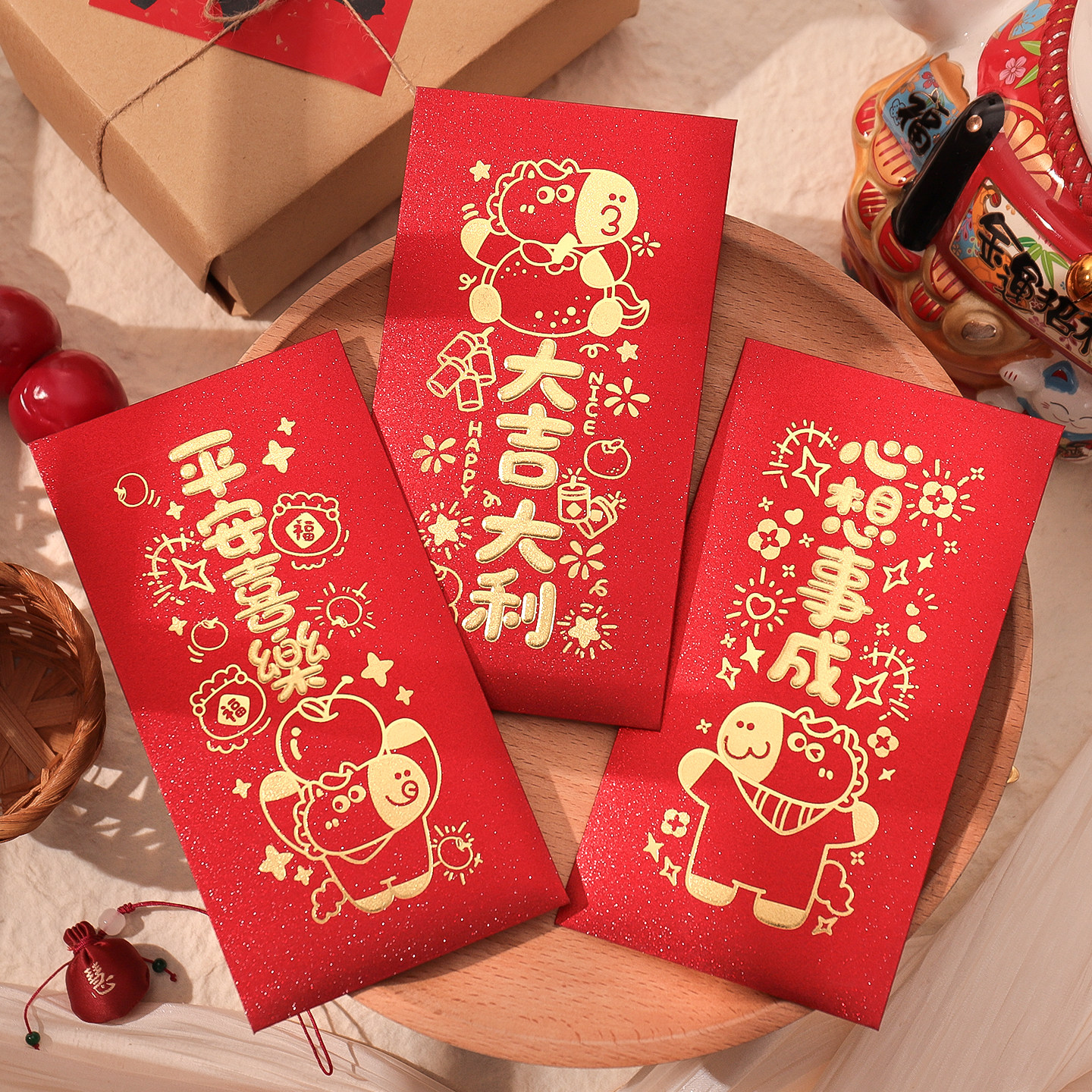 📚 2026马年新款磨砂烫金红包袋创意卡通方形儿童新年压岁利是封大号