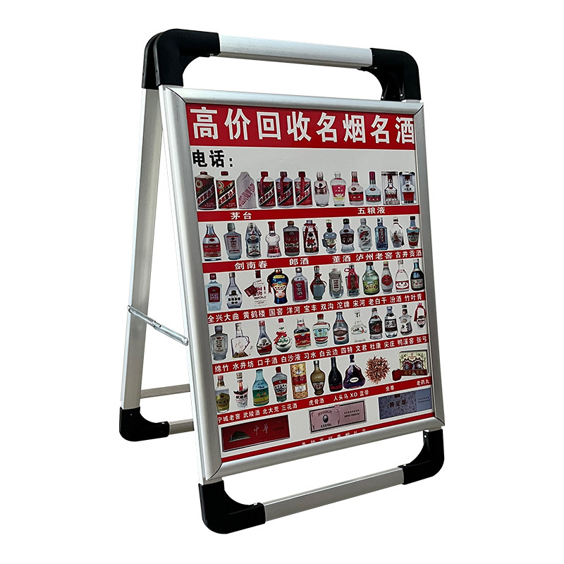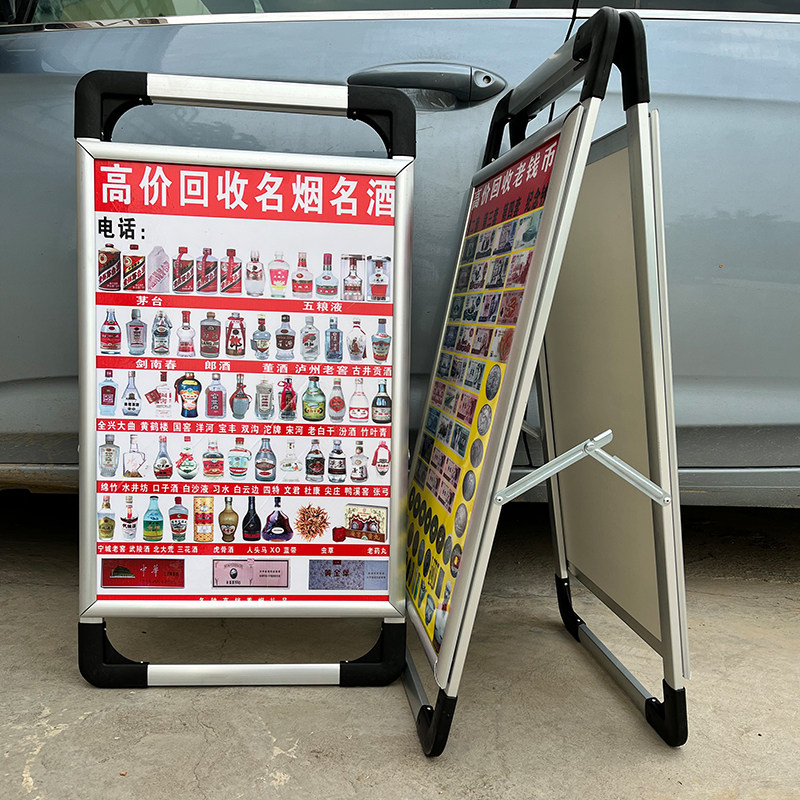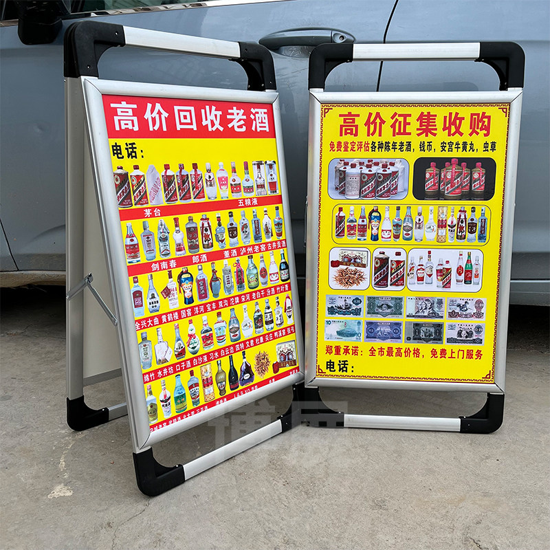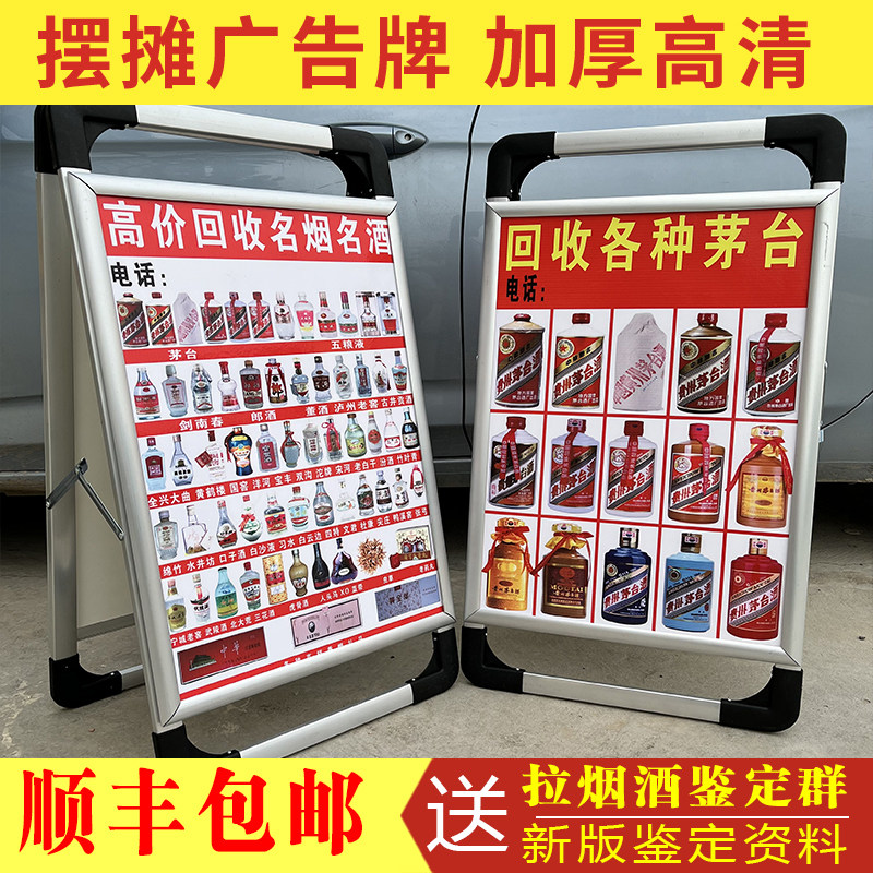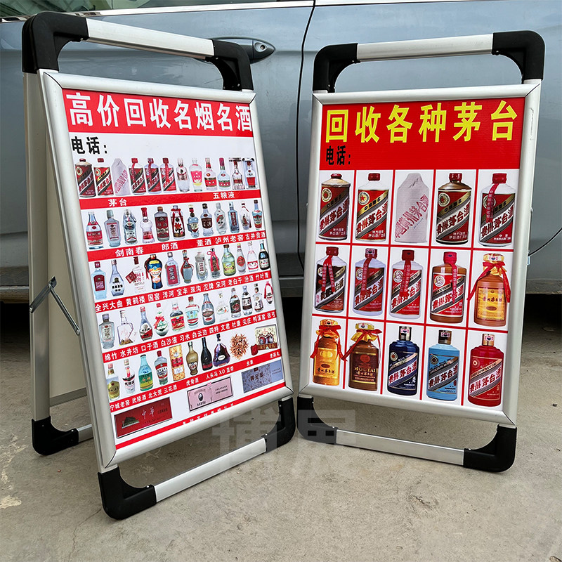 📚 高价回收老酒广告牌钱币礼品三角牌加厚铝合金双面手提海报架地摊