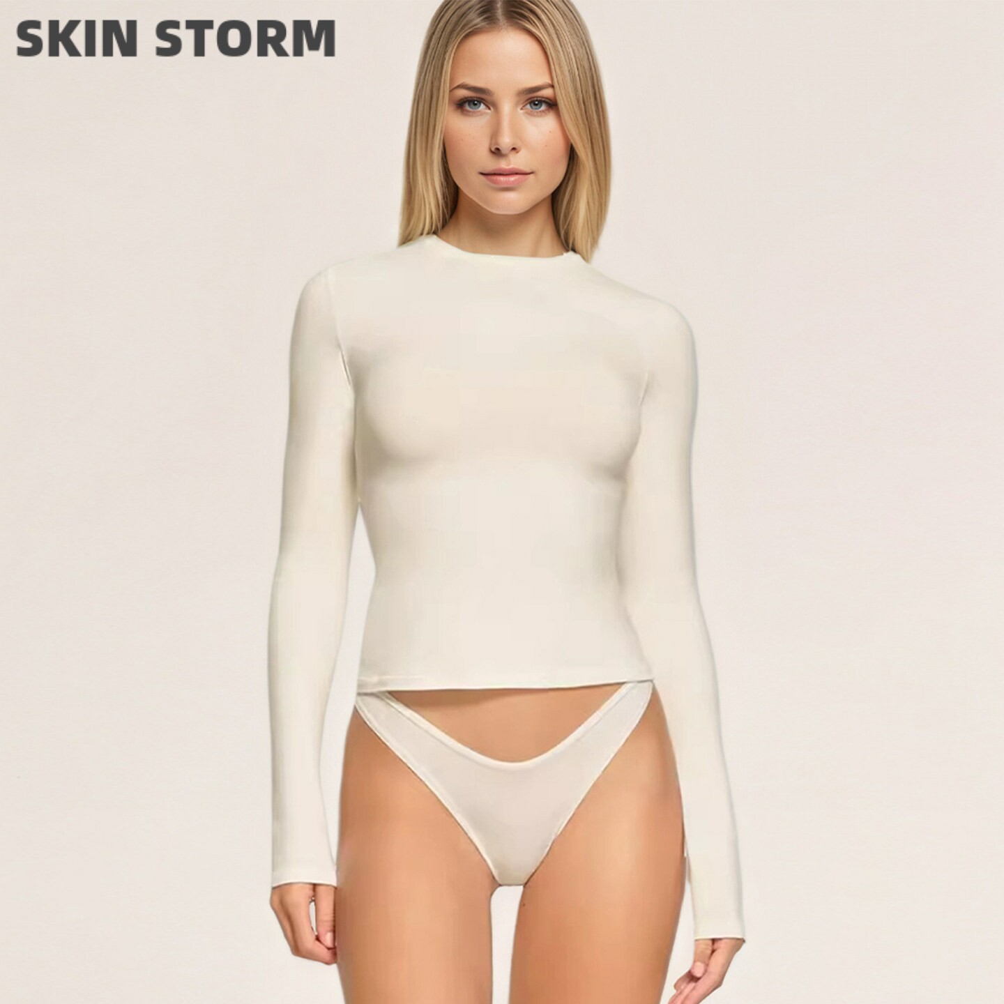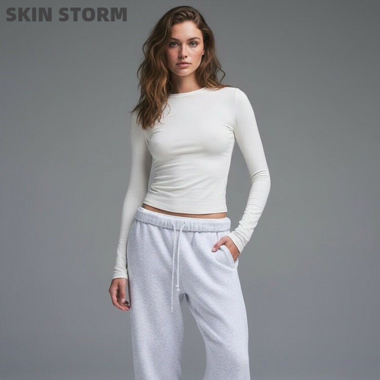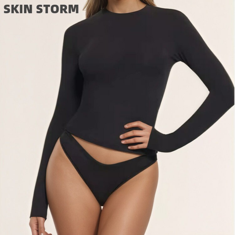📚 SKIMS卡戴珊风长袖辣妹打底衫修身显瘦上衣纯棉t恤【SKIN STORM】