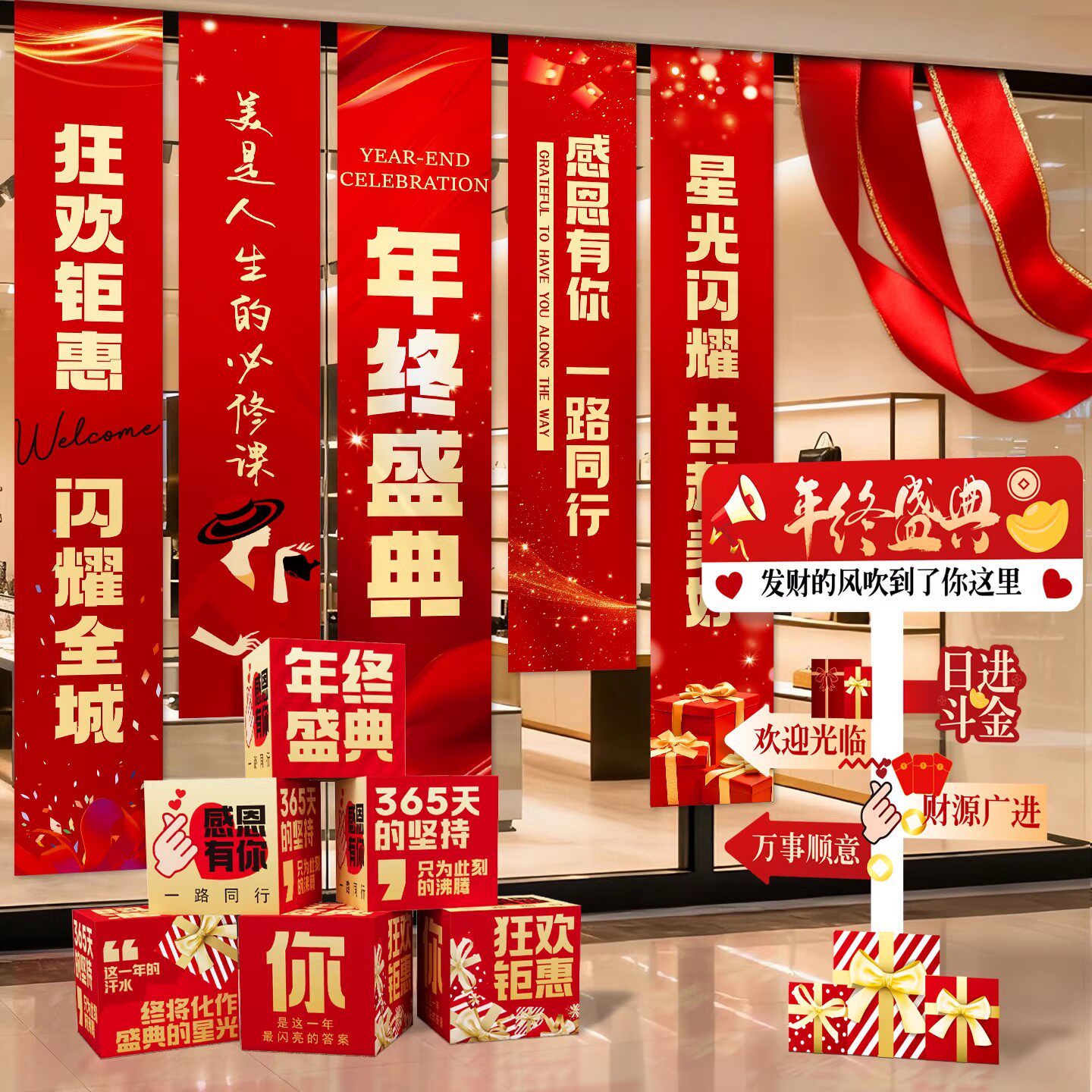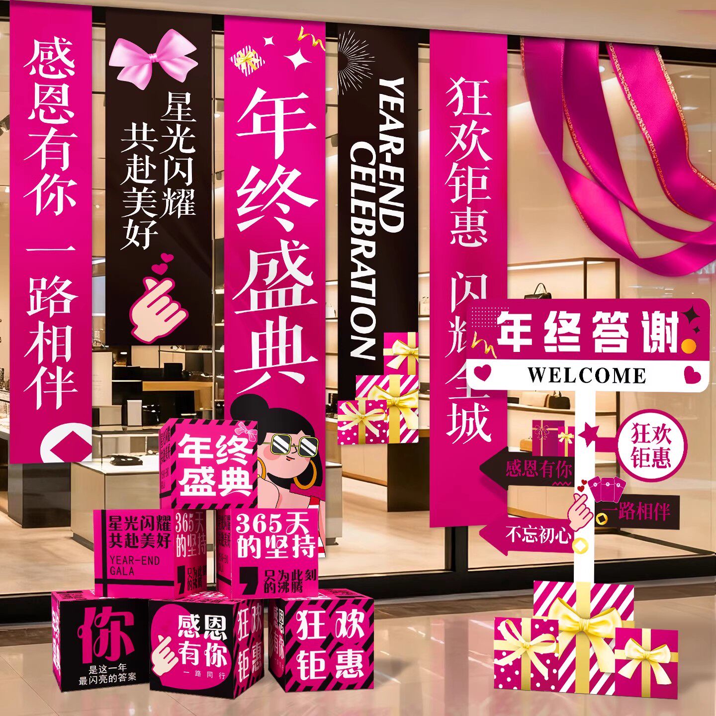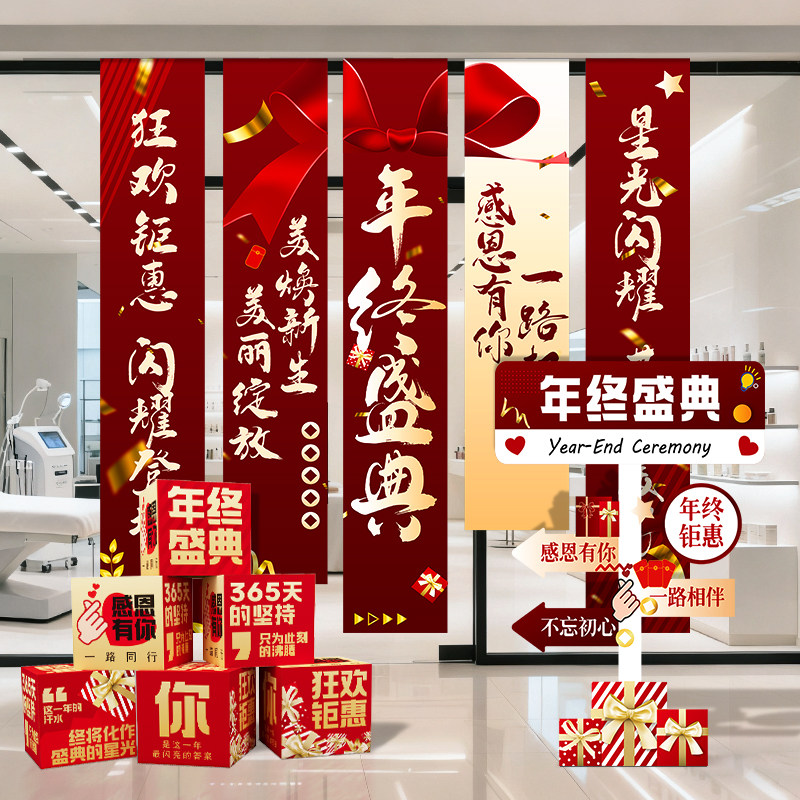 📚 美容院年会答谢活动氛围布置装饰年终盛典周年庆打卡拍照挂布条幅