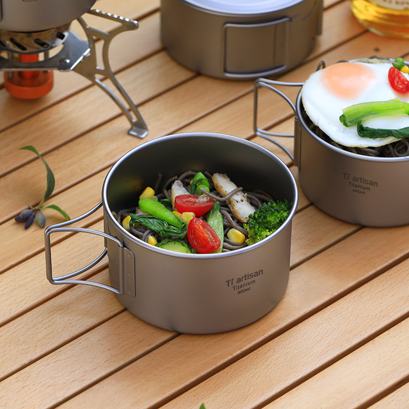 📚 钛工匠户外钛碗纯钛露营餐具野营饭盒便携式套碗折叠雪拉碗钛饭盒