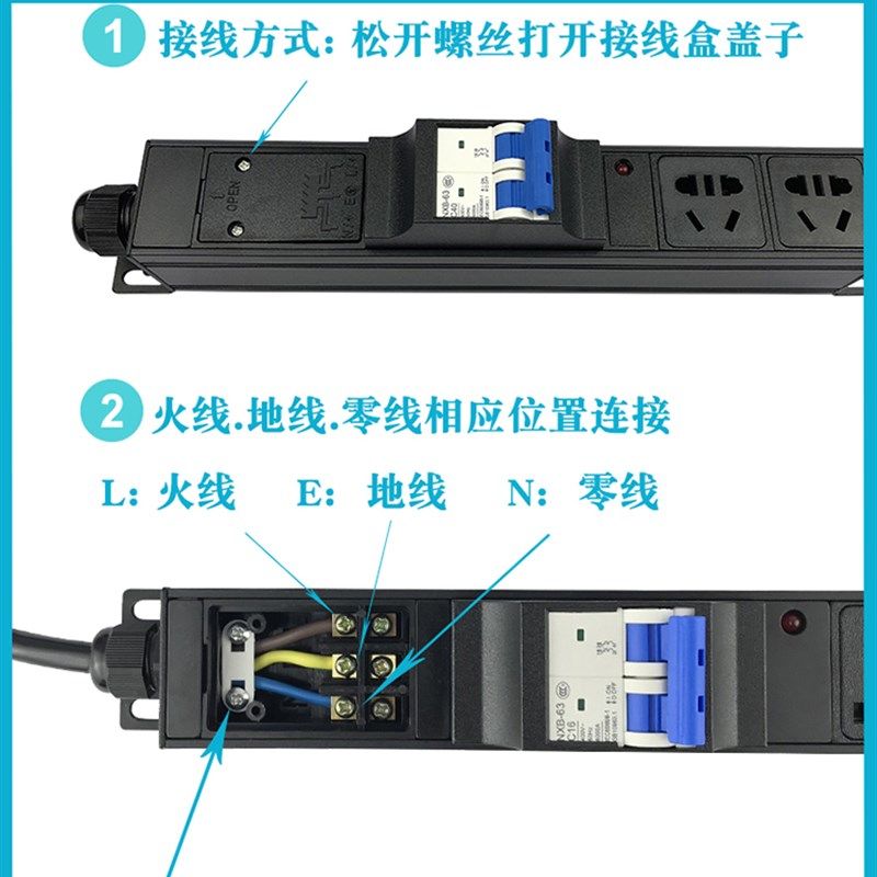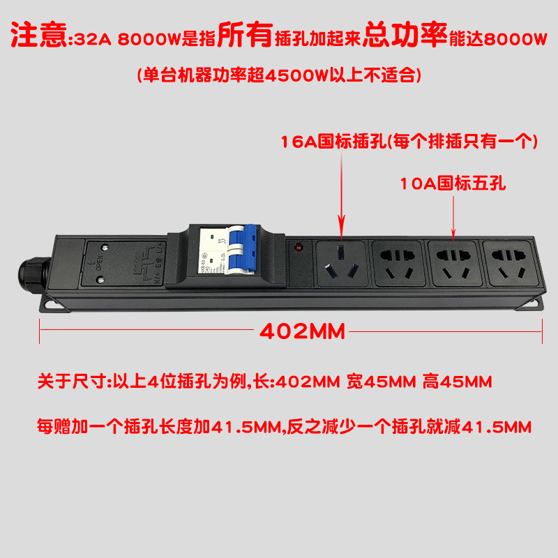 📚 大功率32A8000W 带空开漏电防过载保护PDU机柜插排插座工业接线板
