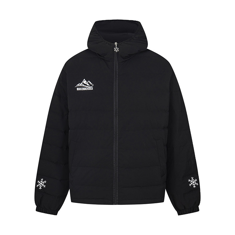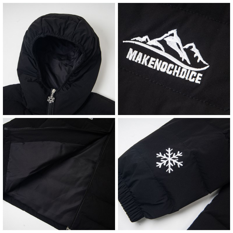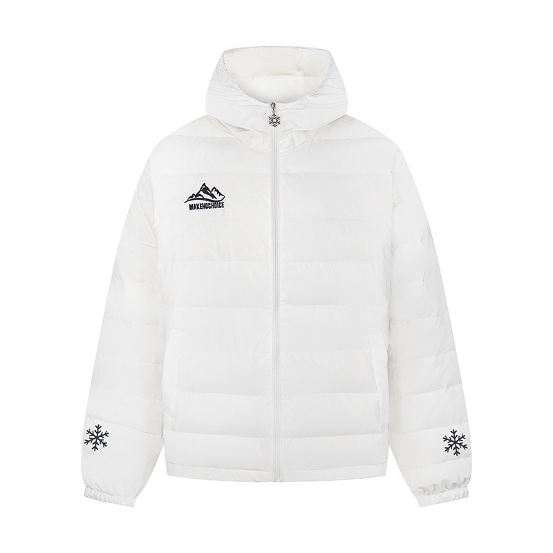 📚 PJLX羽绒服字母雪花山峰刺绣白鸭绒轻薄连帽排骨冬季男女保暖外套