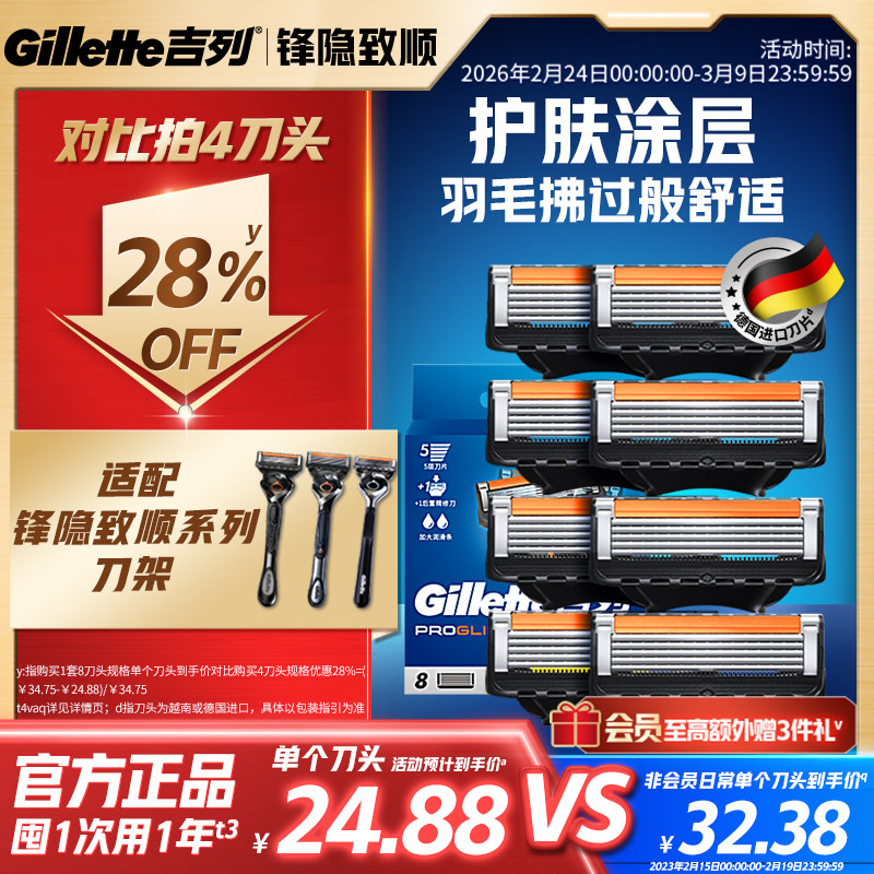 📚 吉列锋隐致顺引力盒剃须刀替换刀头男士5层刀片刮胡刀头剃须刀片
