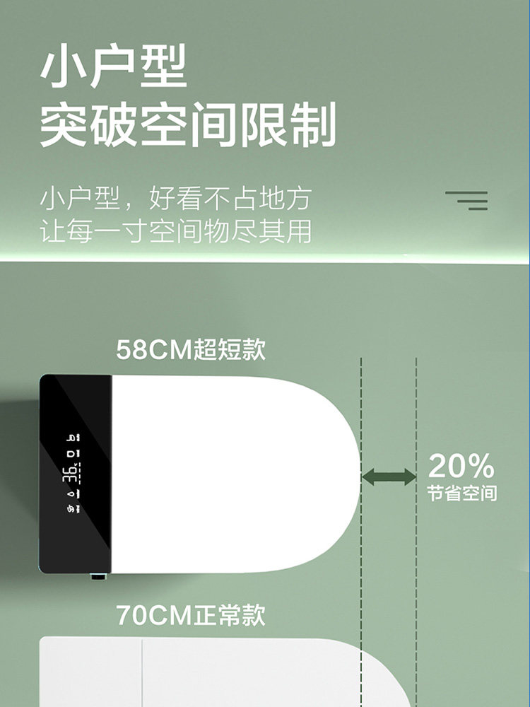 📚 短款智能马桶虹吸即热式小户型小号58cm长全自动无水压限制坐便器