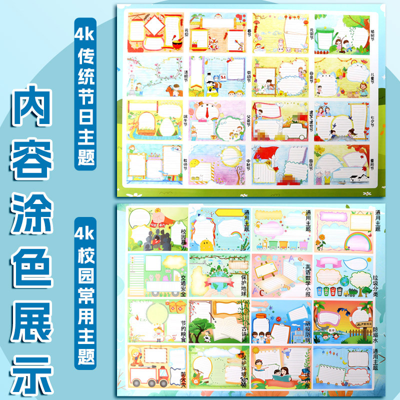 📚 4k手抄报作业模板防溺水小学生半成品手绘镂空板报纸国庆元旦节儿童绘画线稿节日消防安全读书小报板神器4开