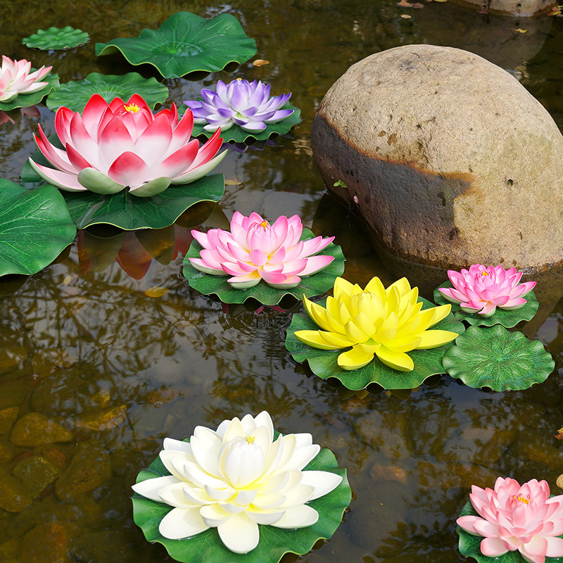 📚 仿真荷花装饰美容院床上摆件鱼缸风水池荷叶假睡莲花供佛舞蹈道具