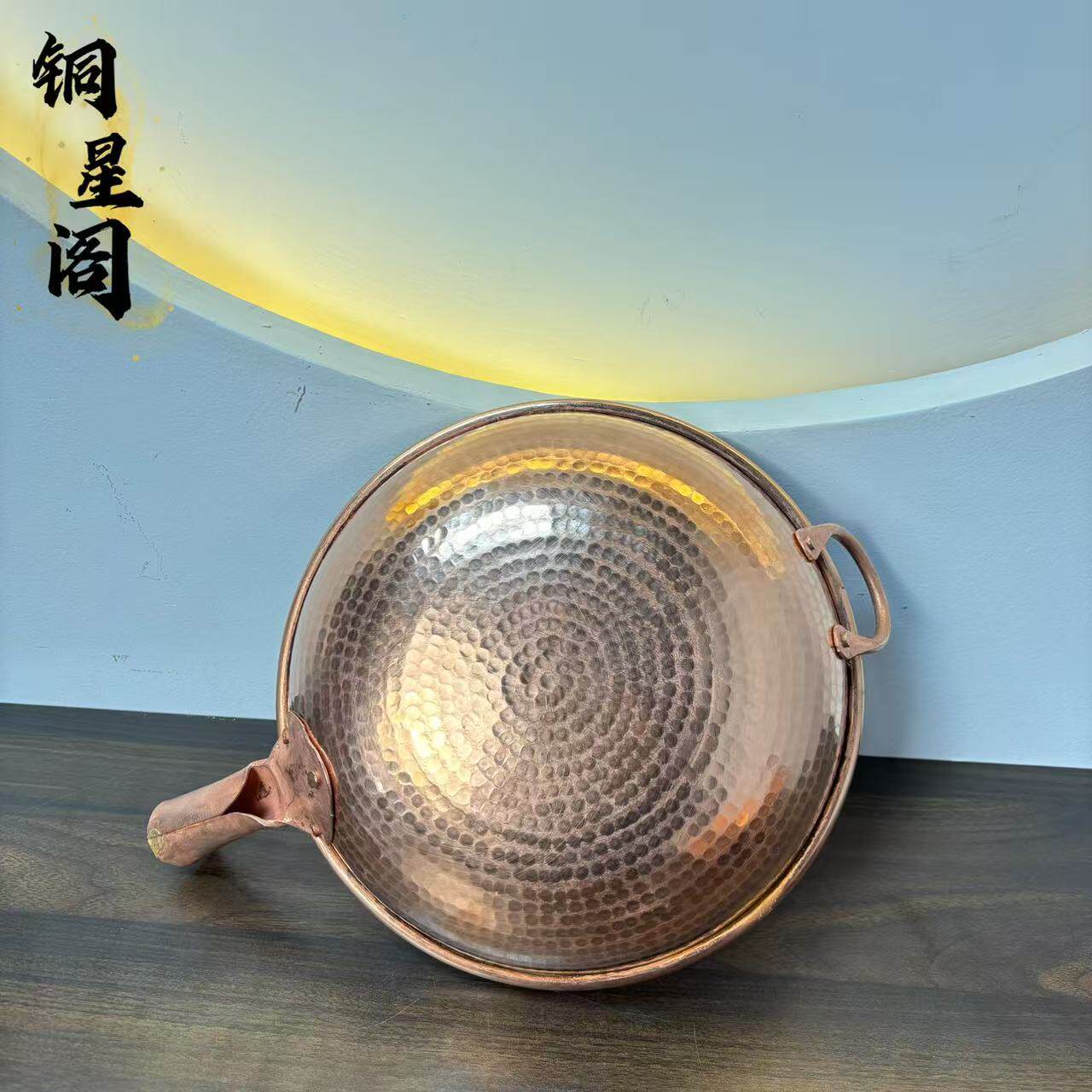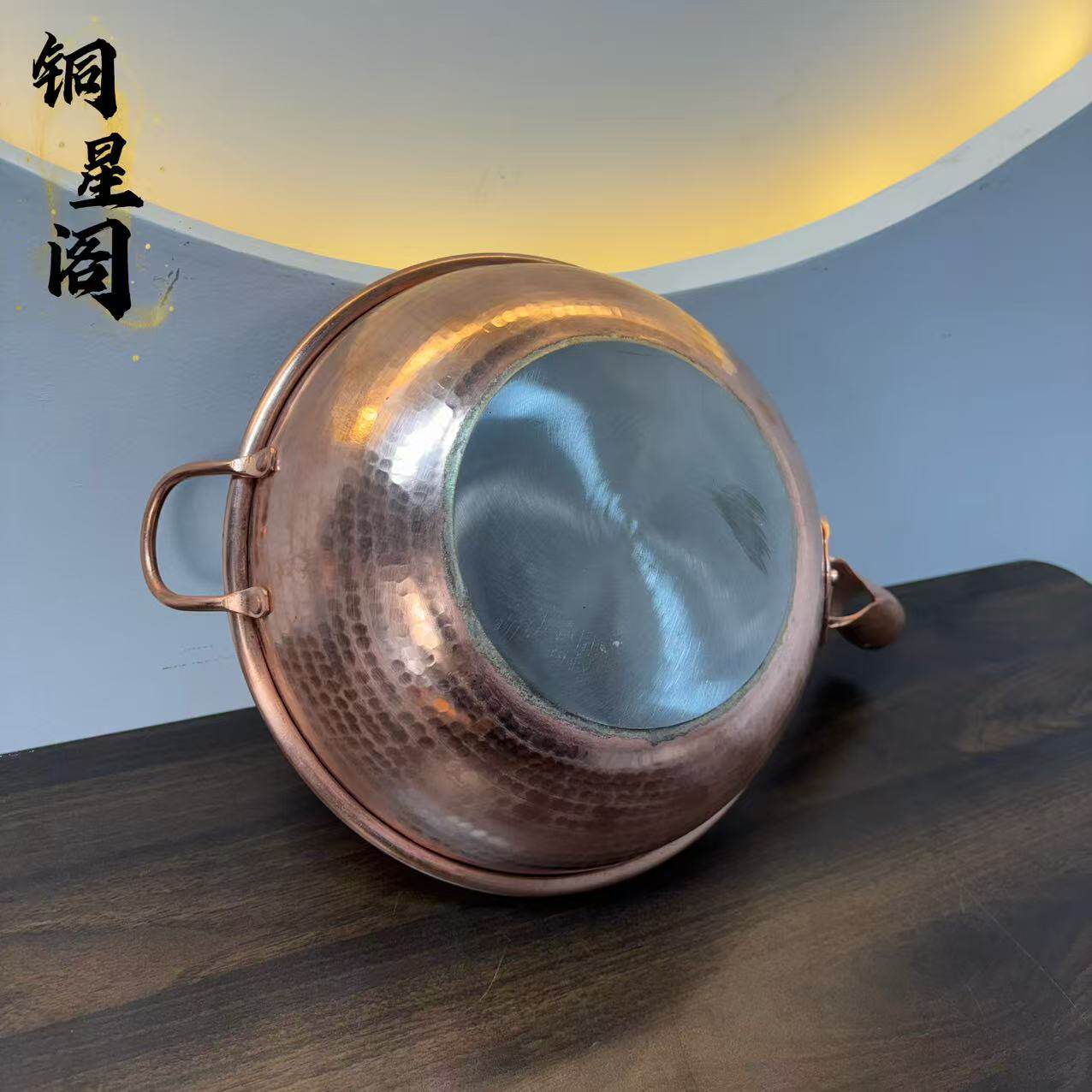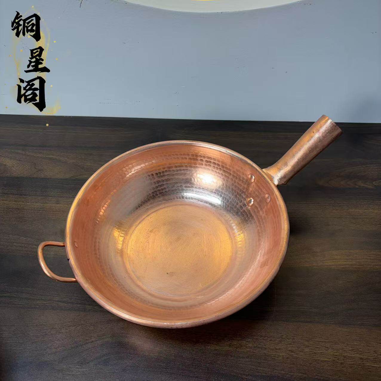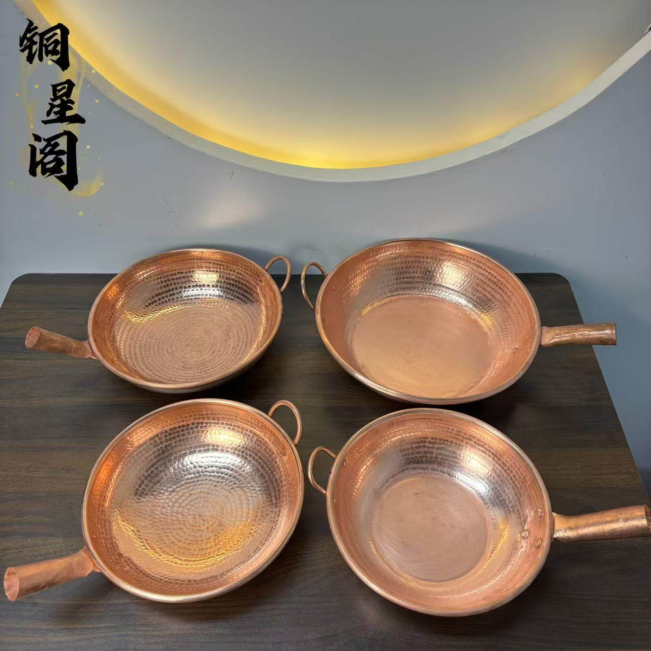 📚 纯手工纯铜炒锅加厚紫铜炒菜锅铜火锅铜炒瓢铜火锅盆纯铜汤锅