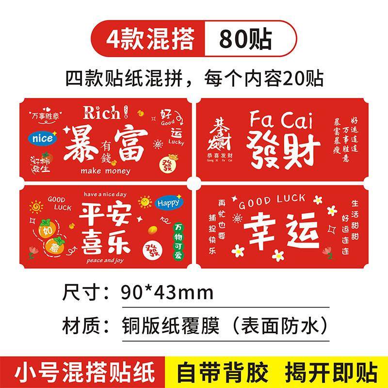 📚 发财暴富不干胶贴纸平安喜乐幸运奶茶波波杯标签烘焙甜食品封口贴