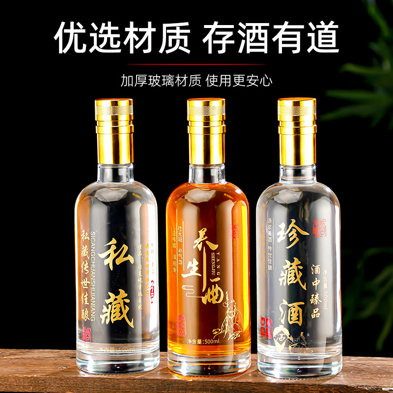 📚 泡酒玻璃瓶透明白酒瓶空酒瓶密封人参鹿茸药酒瓶养生酒专用酒瓶子