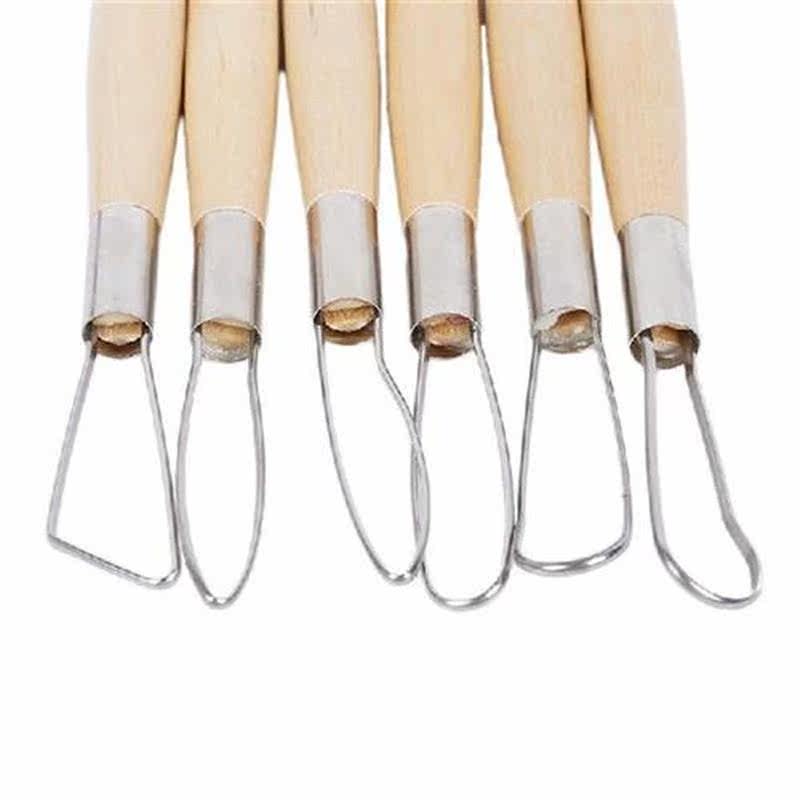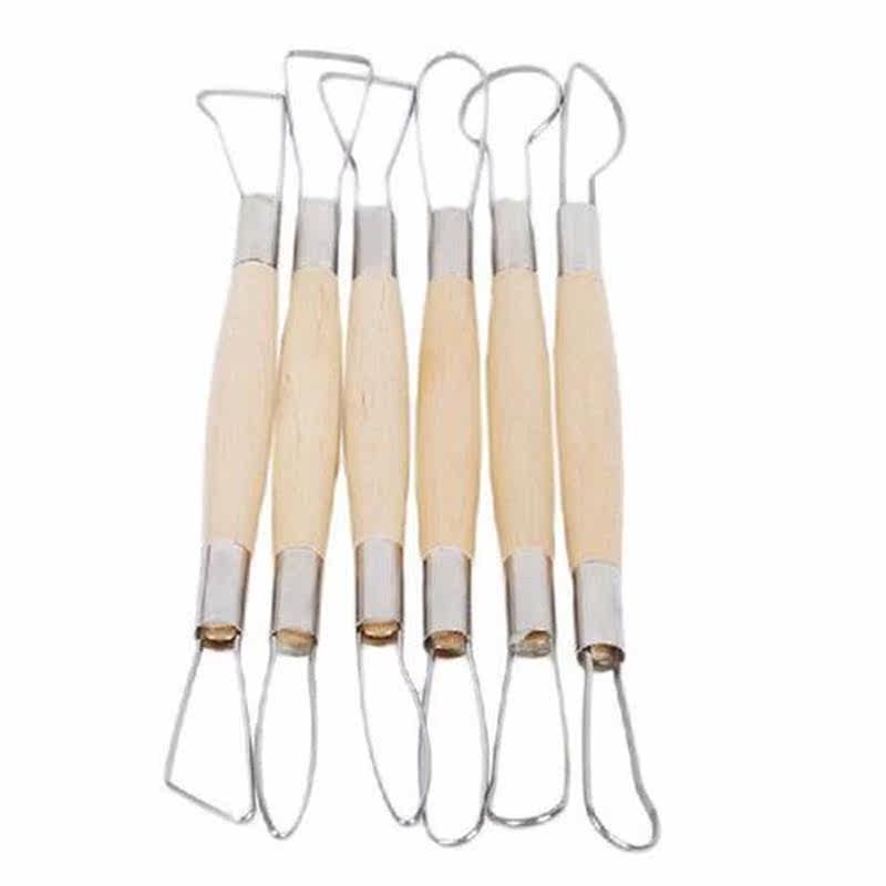 📚 6Pcs/Set Pottery Ceramics DIY Tool Set Wooden Handle Wax