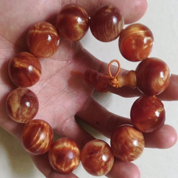 📚 松明子明丁佛珠东北满油沉香手串男20琥珀木全透光手链血龙木手串