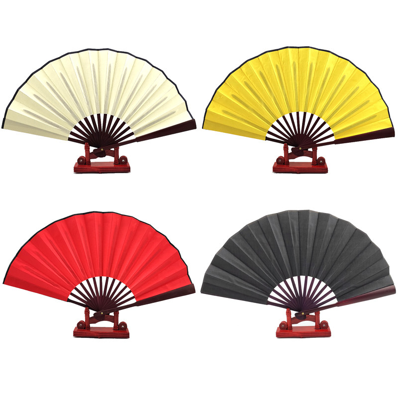 📚 宣纸空白竹扇书法扇双面绫绢折扇白色红色扇子中国风古风黄色DIY