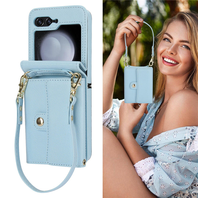 📚 畅晟flip5 case适用三星zflip5手机壳samsung z flip4折叠款手機套zflip3插卡片斜挎背带電話殼包包网红cover