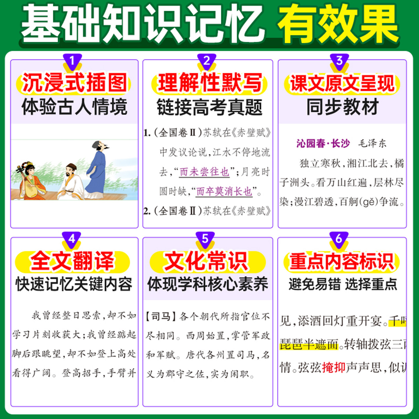 📚 2026新版高中必背古诗词和文言文小本完全解读必备古诗文72篇口袋书带翻译图解速记一本通语文小册子人教版随身记教辅绿卡图书