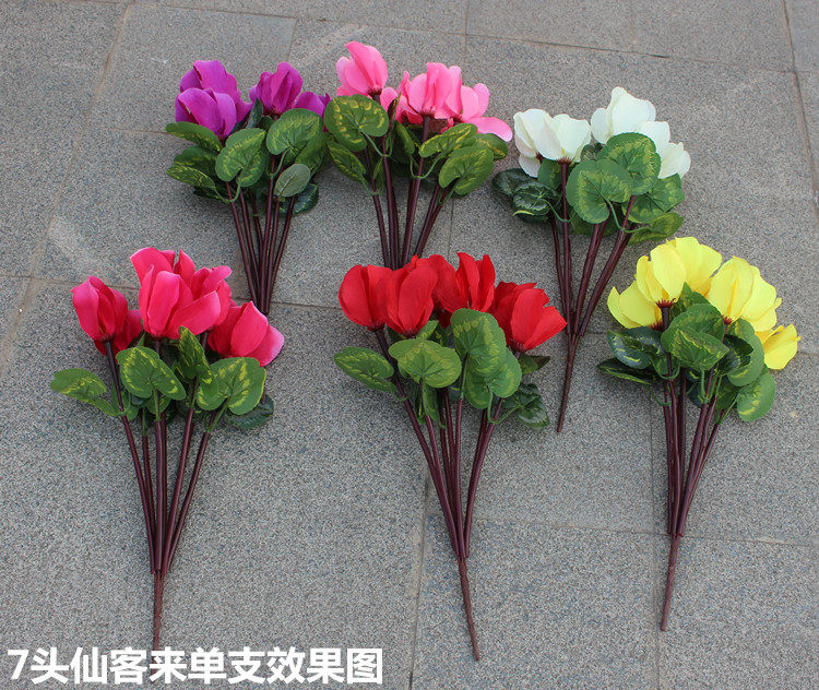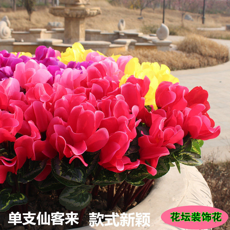 📚 仿真仙客来兰花牡丹花束塑料把花家居餐桌摆放装饰花户外花坛插花