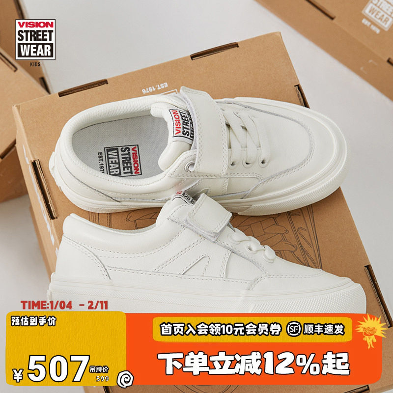 📚 VISION童鞋 STICKY魔术贴白色全皮低帮运动鞋滑板鞋男女儿童