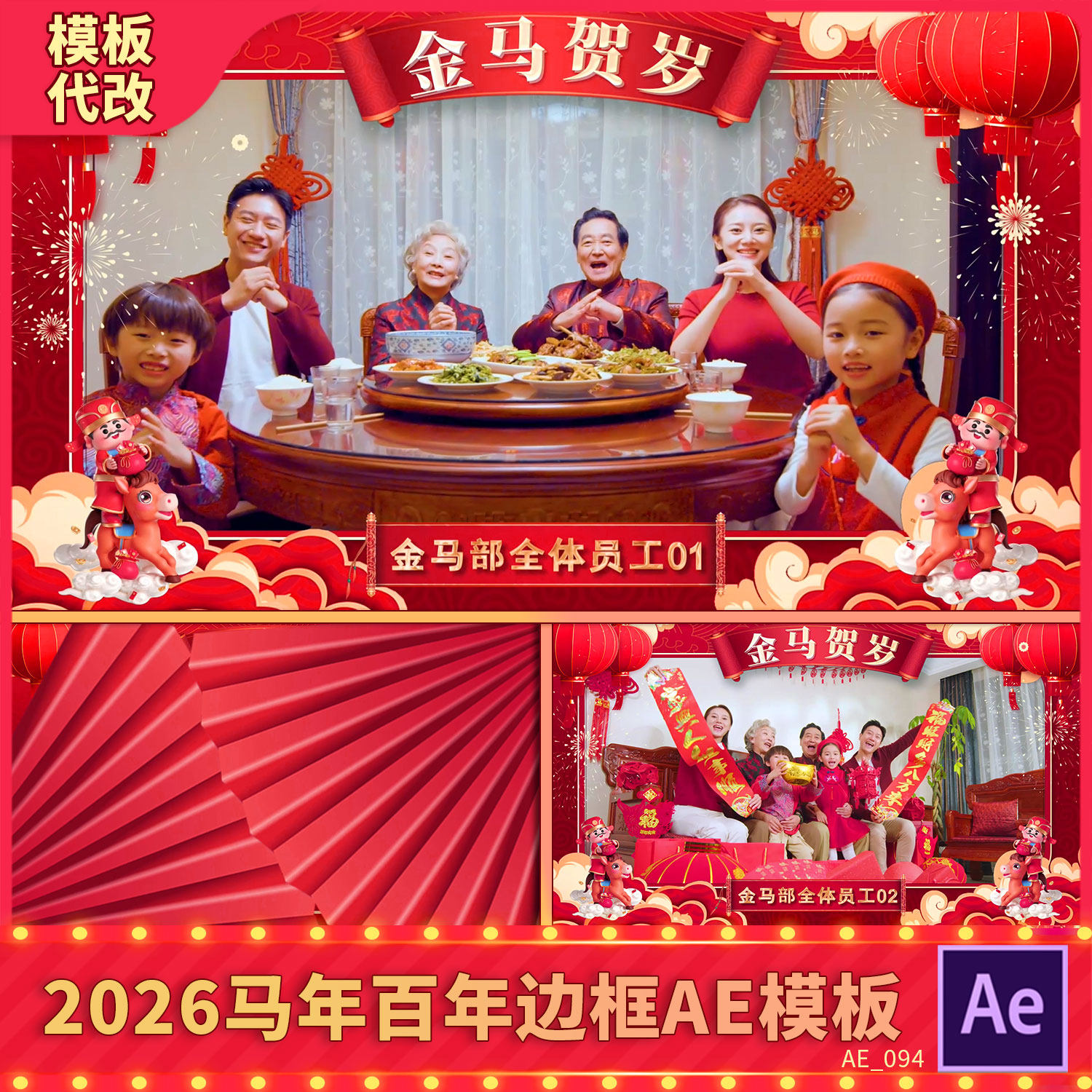 🎉“新年新气象!2026马年春节祝福视频边框模板”🎆