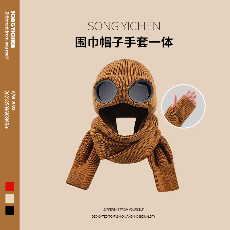 📚 飞行员墨镜围巾手套三件套帽子女冬季户外骑车防风帽东北保暖护耳