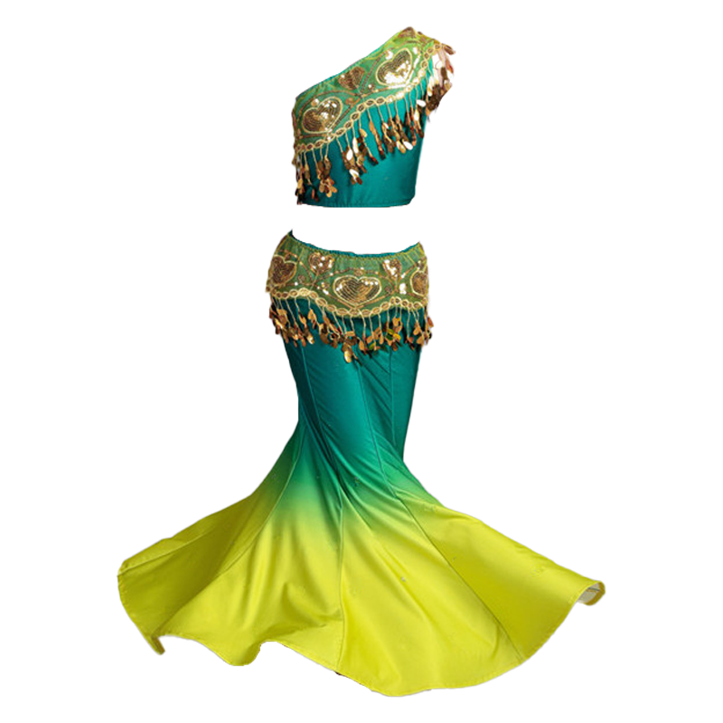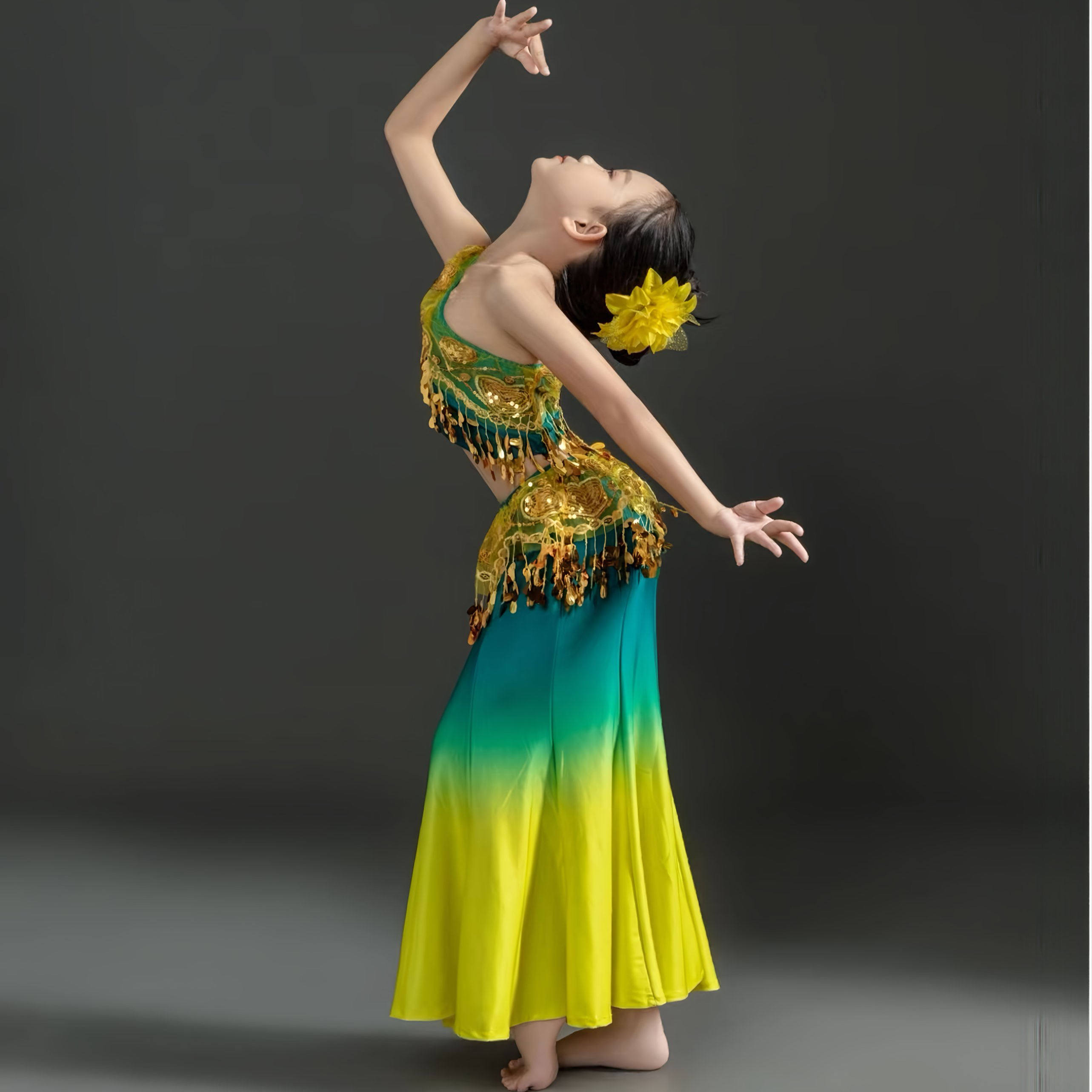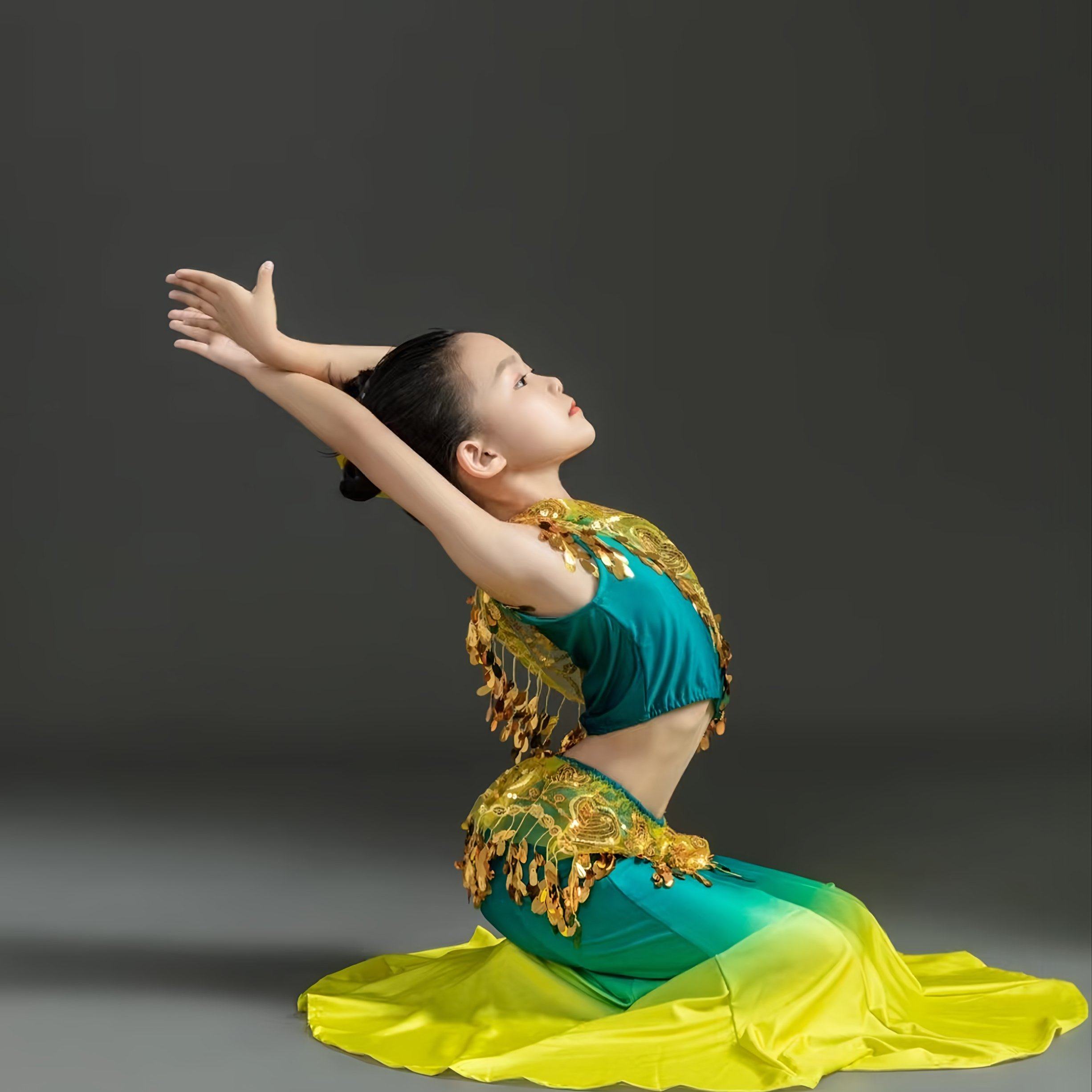 📚 儿童傣族舞蹈服装演出包臀女童艺考练习裙修身练功裙表演服鱼尾裙