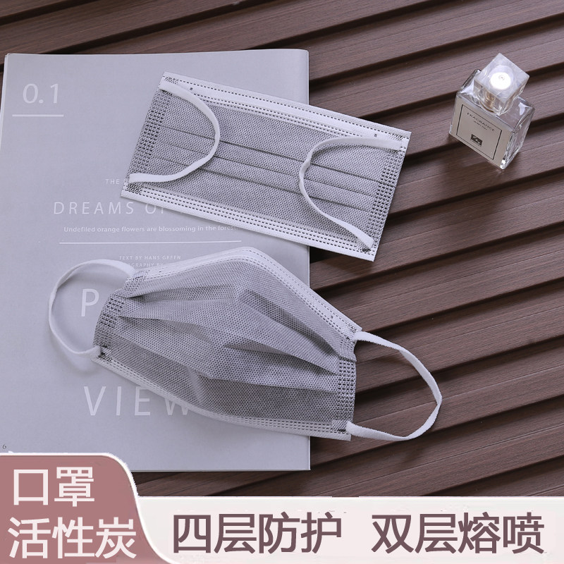 📚 活性炭口罩一次性四层灰色碳透气防尘粉尘专用实验室面罩工业甲醛