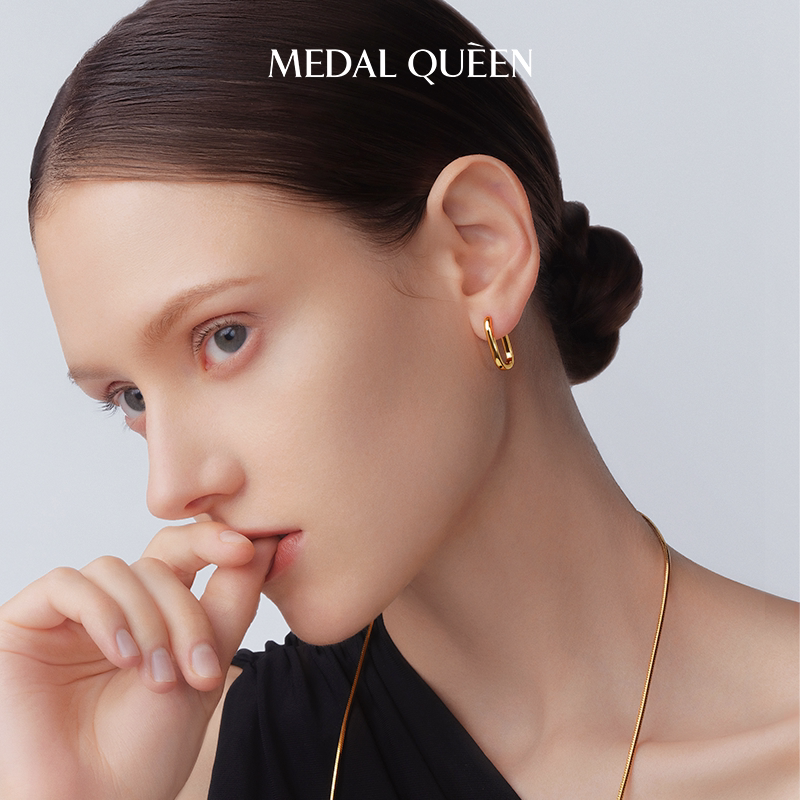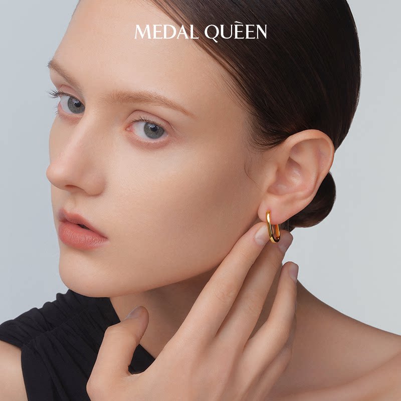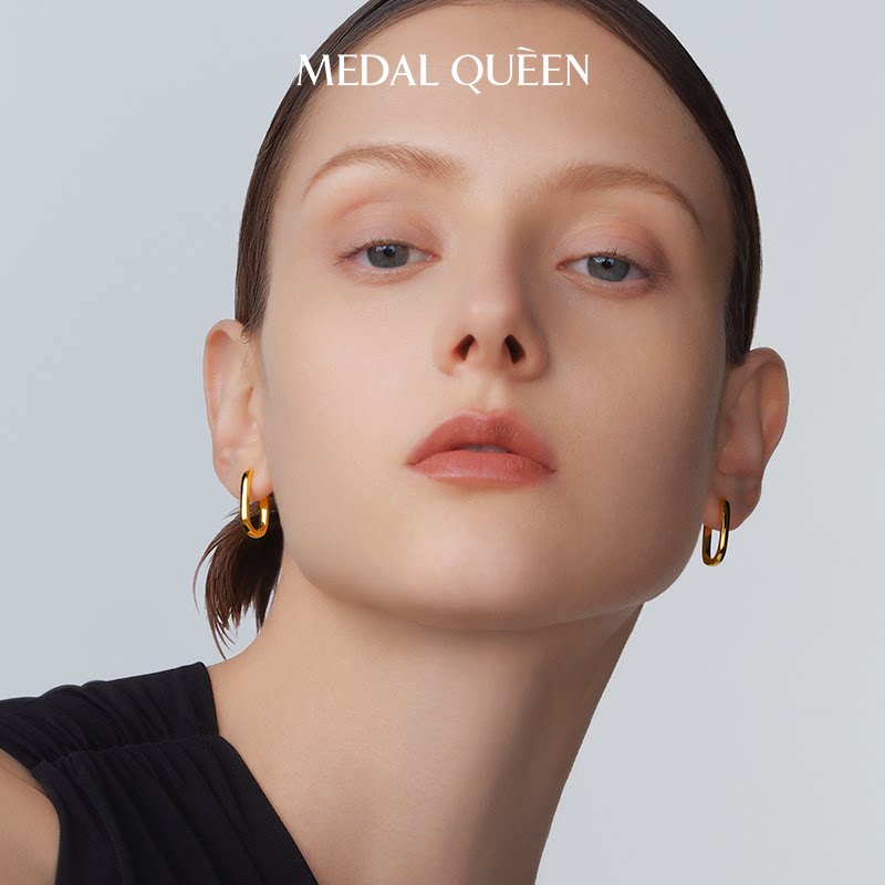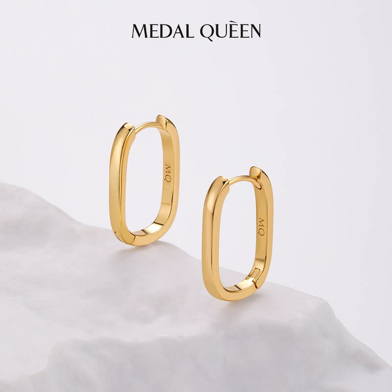 📚 新款简约小方环U形耳环女高级感潮气质长方耳扣几何素圈耳钉礼物