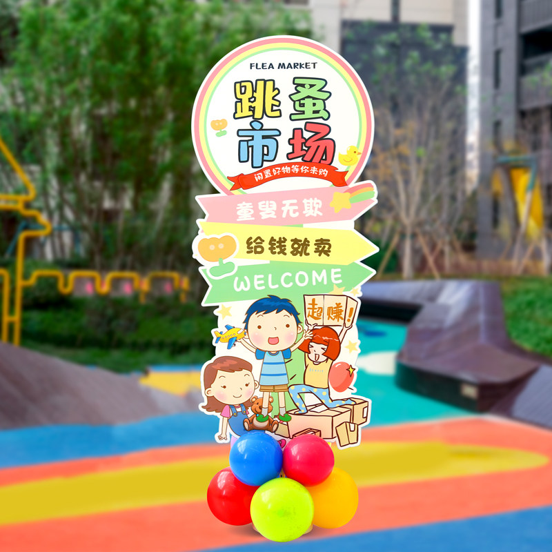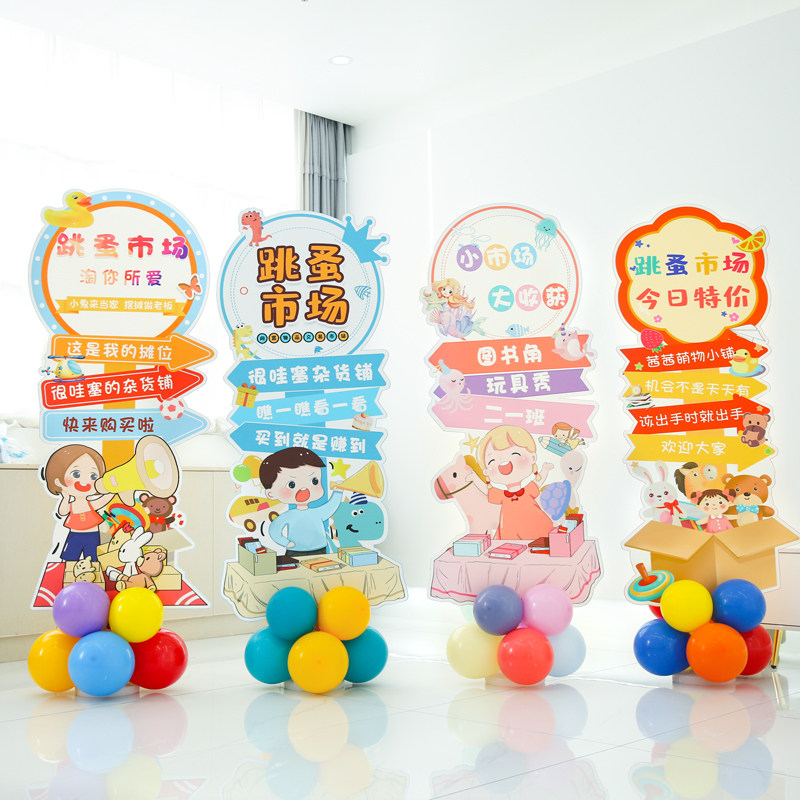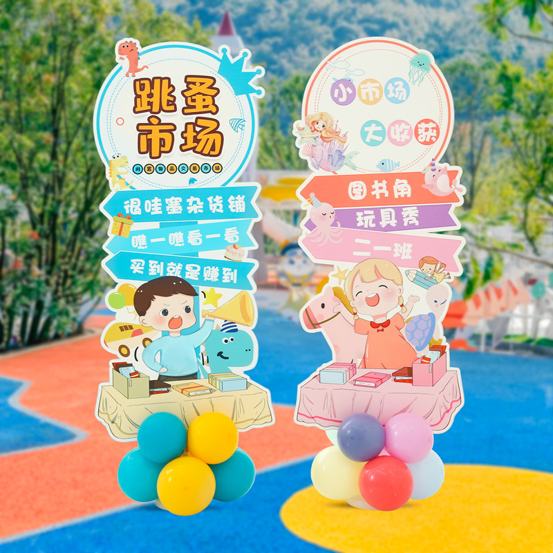 📚 新品幼儿园跳蚤市场摊位牌装饰摆地摊布置气球O义卖活动小学校园k