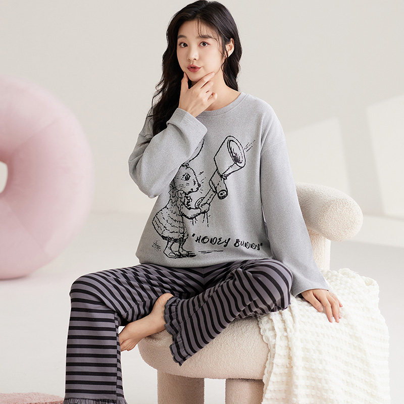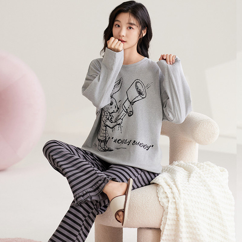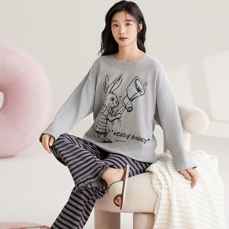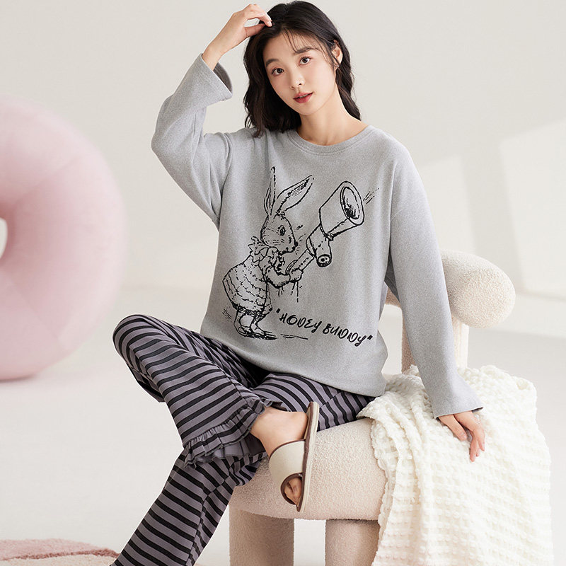 📚 可人儿秋冬季保暖德绒睡衣女士秋冬款加绒长袖磨毛卫衣家居服套装