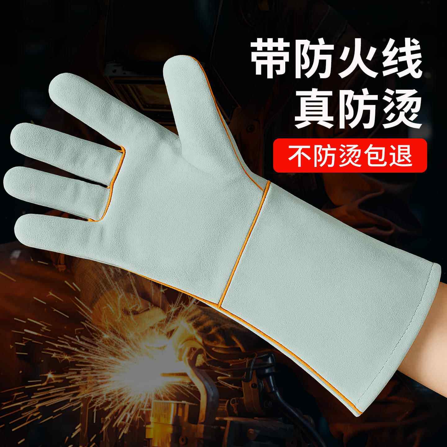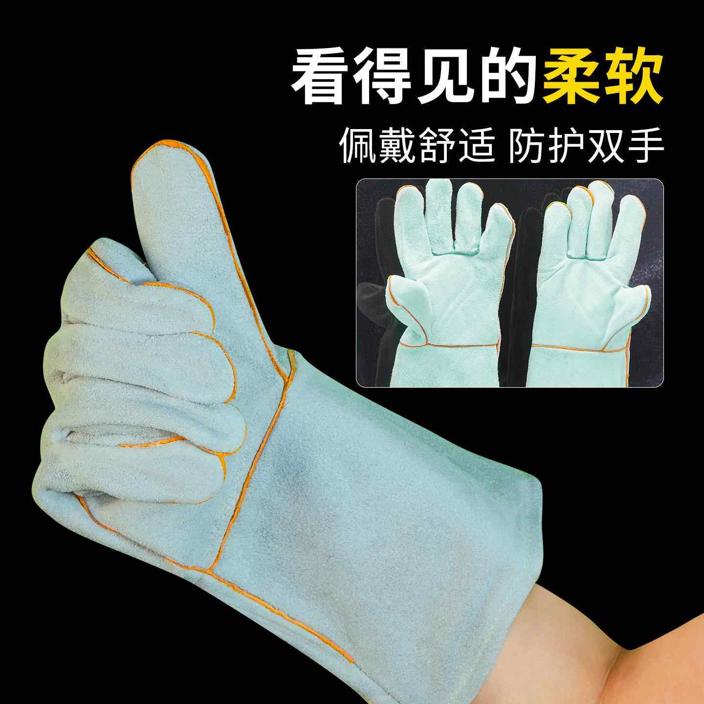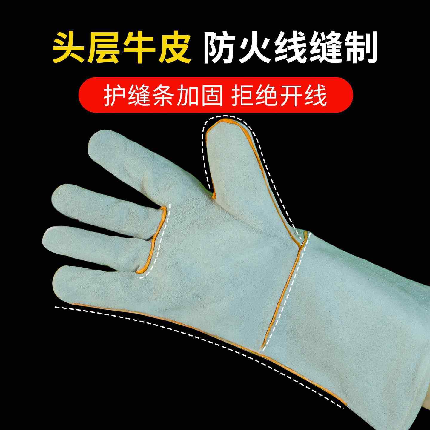 📚 焊工手套右手单只防烫隔热手套焊工手套牛皮耐高温阻燃加厚手套